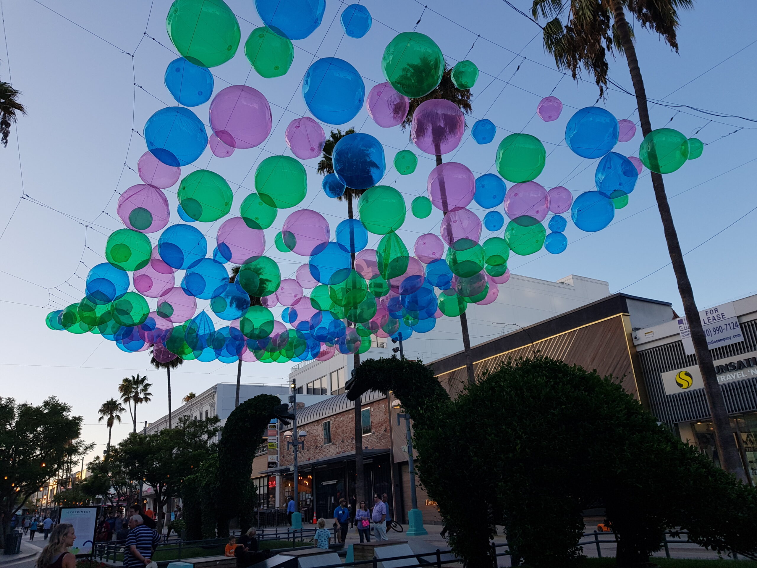 Die Third Street Promenade in Santa Monica ist eine autofreie Shoppingstraße, die auch ohne einen Cent auszugeben Spaß macht. Hier triffst du auf Straßenkünstler:innen, Jongleure, Musiker:innen, Tanzshows und jede Menge gute Stimmung.