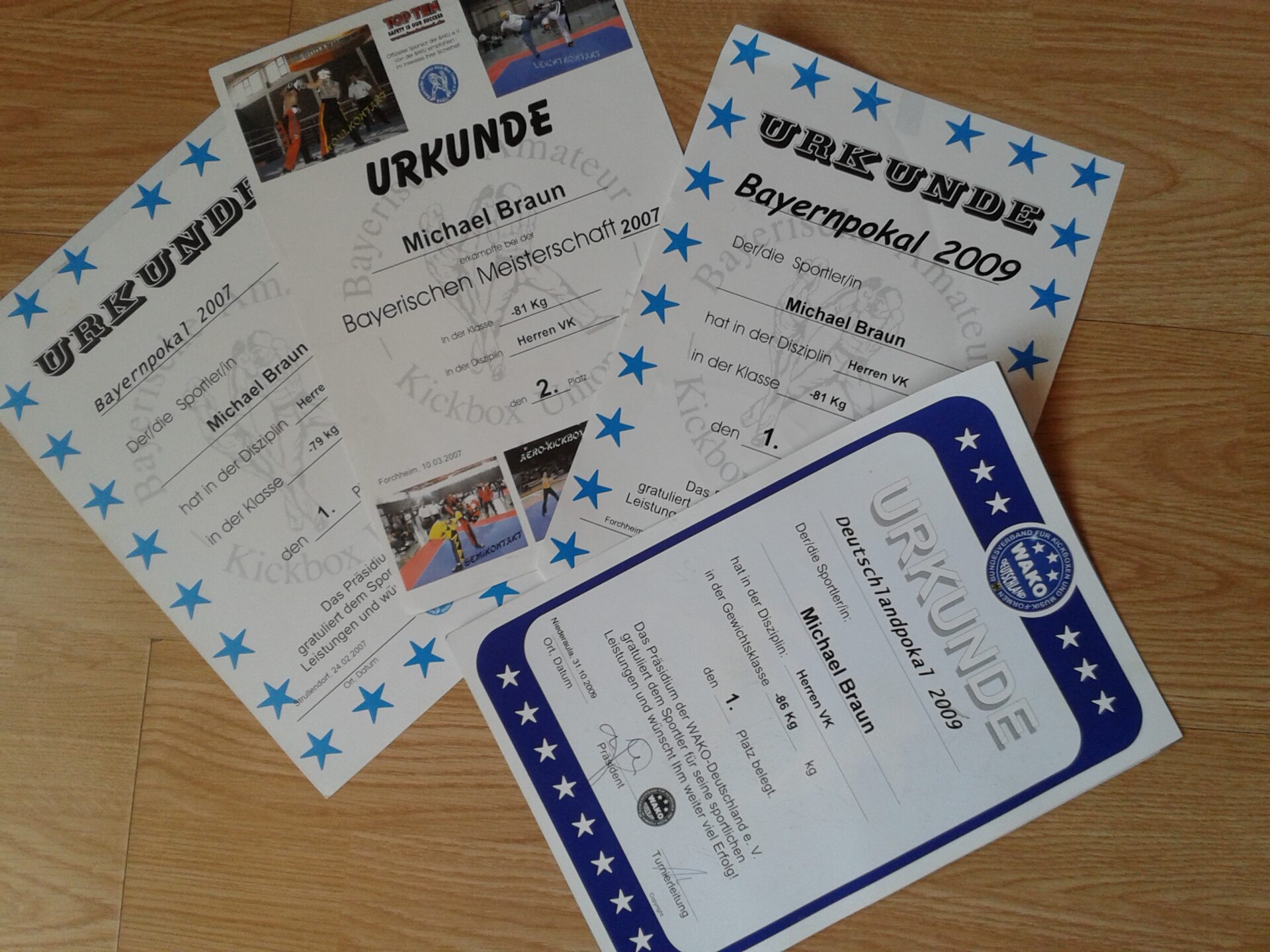 Auch mein Sohn hat natürlich sehr viele Erfolge in seiner Zeit als aktiver Sportler, im Kicxkboxen sowie im Boxen erzielt.