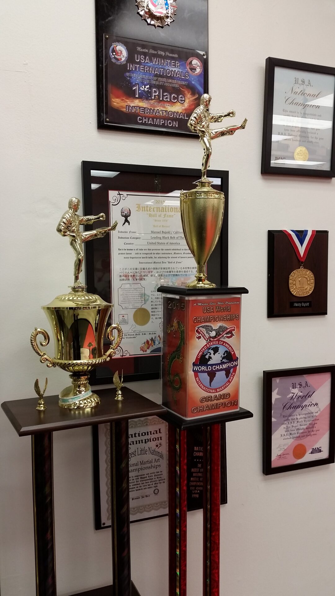 Manny Bujold hat fast 30 Jahre Kampfkunst-Erfahrung und ist vielfacher Sport Karate Weltmeister. Er gewann 2015 seinen zwölften und dreizehnten Sport Karate Weltmeister Titel. Außerdem ist er Mitglied der USA Martial Arts Hall of Fame und er Internationalen Martial Arts Hall of Fame und Personel Trainer.