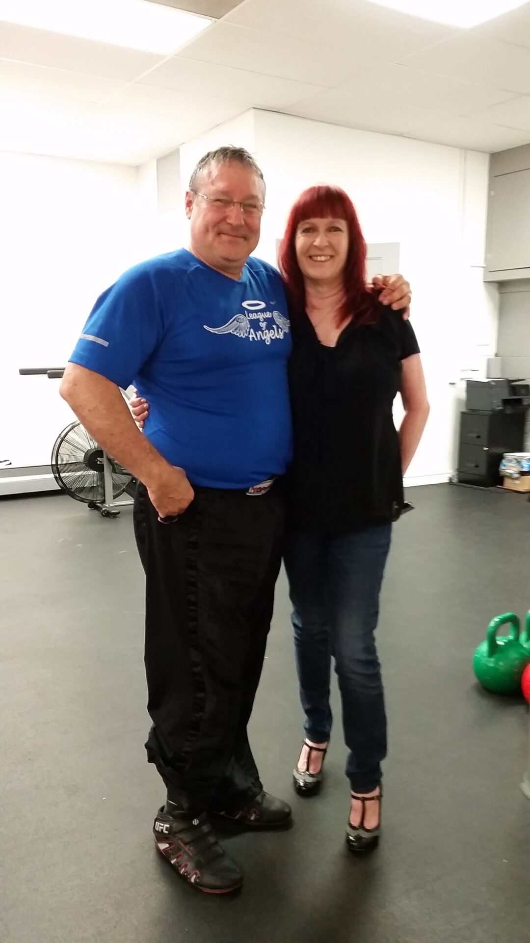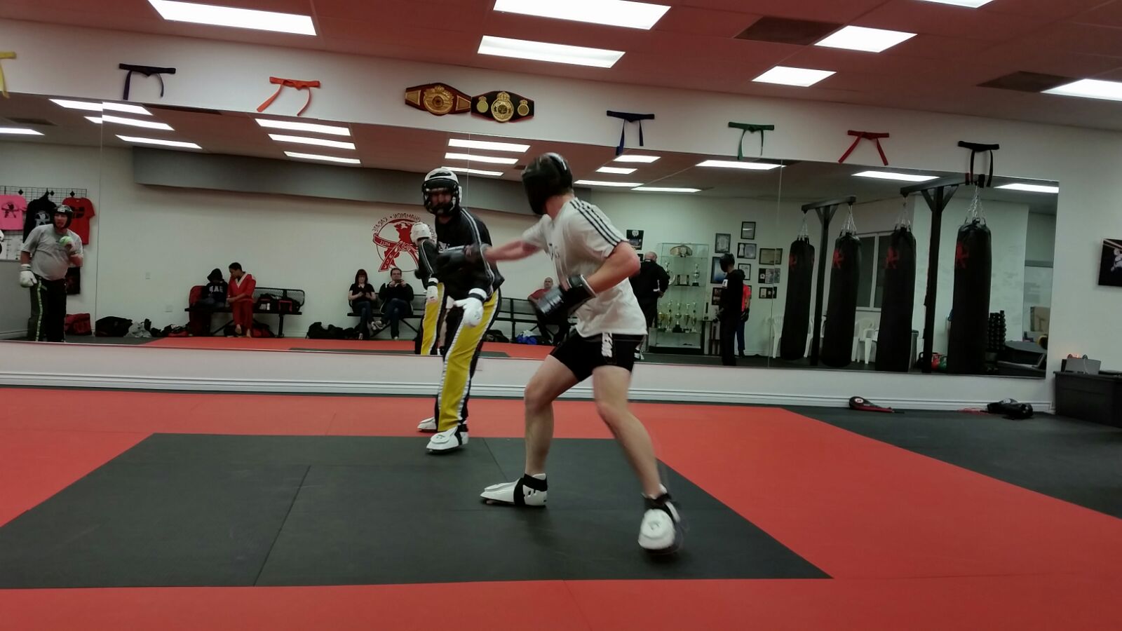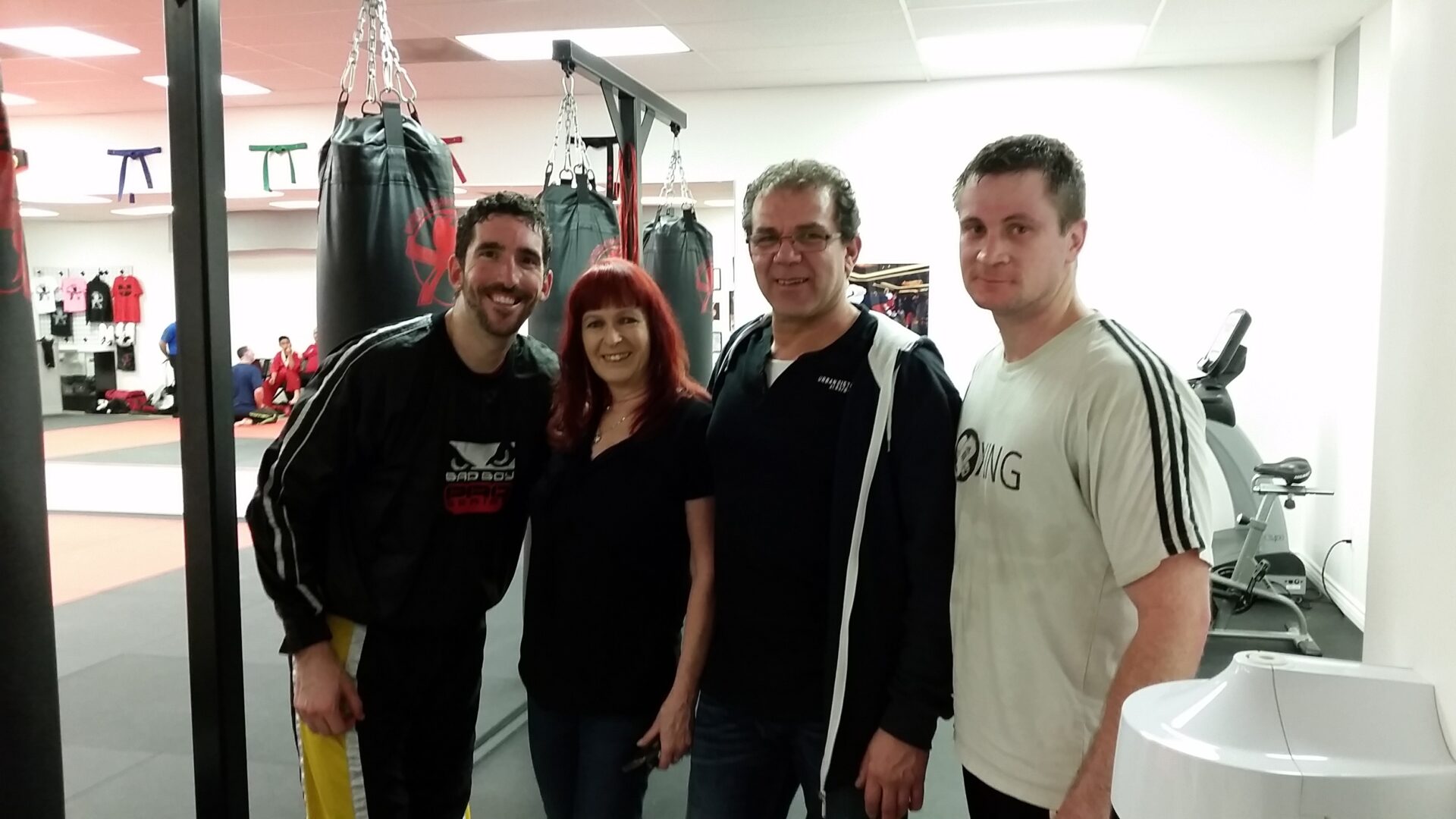 Michael, seid frühester Kindheit ein sehr erfolgreicher Kickboxer mit vielen Auszeichnungen ist befreundet mit Manny Bujold. Der ist Besitzer dieses Studios und mein Sohn trainiert ab und zu bei ihm um in Form zu bleiben.