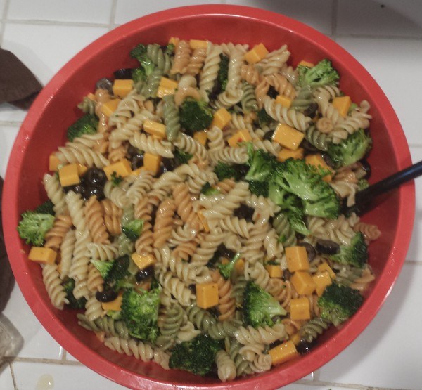 Ich würd ihn vermutlich ohne die Oliven und Ohne Cheddar machen .. oh dann bleibt ja nicht mehr soviel über 🙁 Aber Gott sei Dank sind Pastasalate so super variabel.. 🙂
