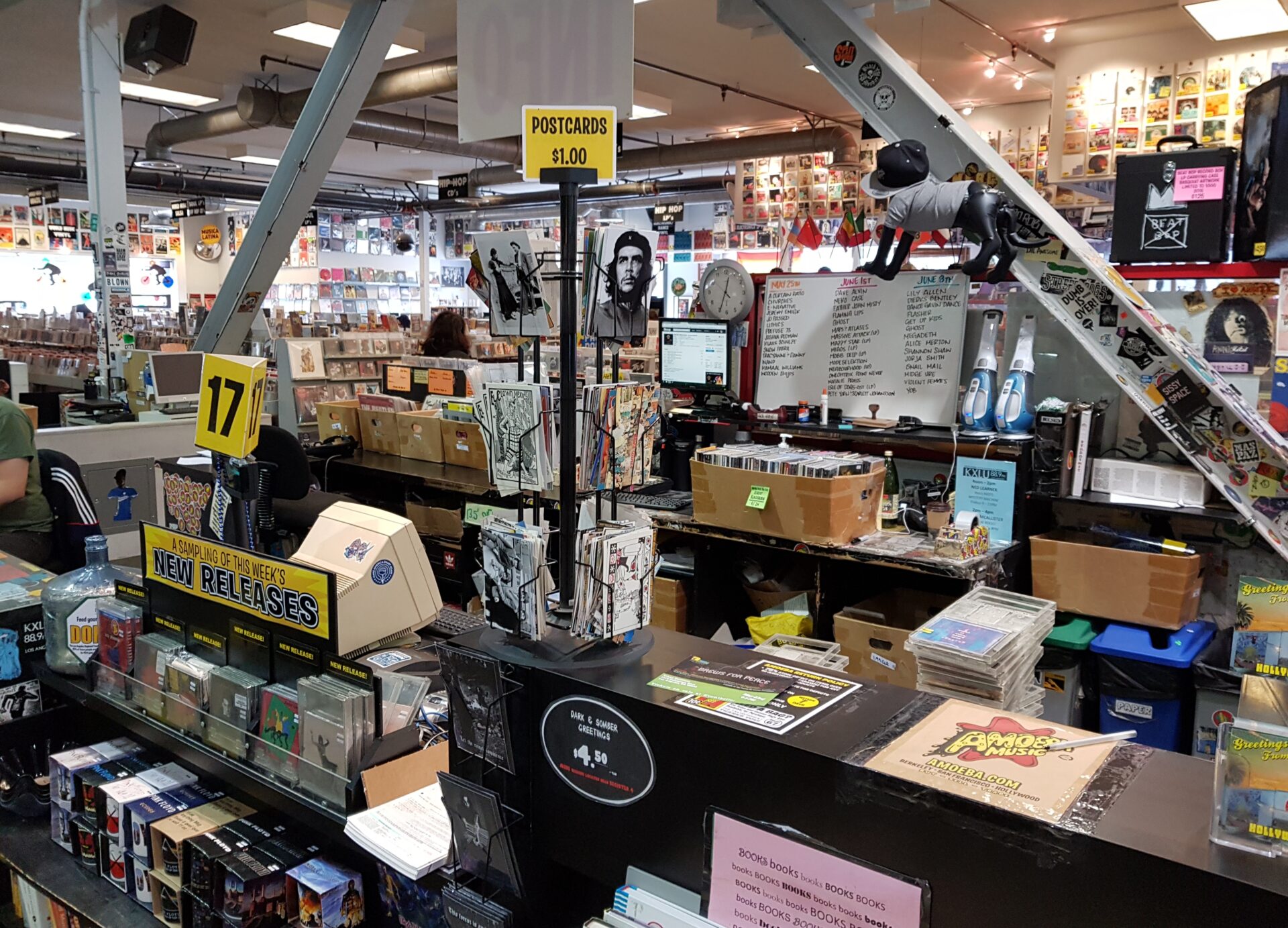 Die riesige Auswahl an Platten CDs, Postern und Filmen in diesem Laden ist unbeschreiblich groß, da kann man sich stundenlang durch die meterlangen gut organisierten Regale wühlen. Es ist wirklich für jeden Geschmack etwas dabei.