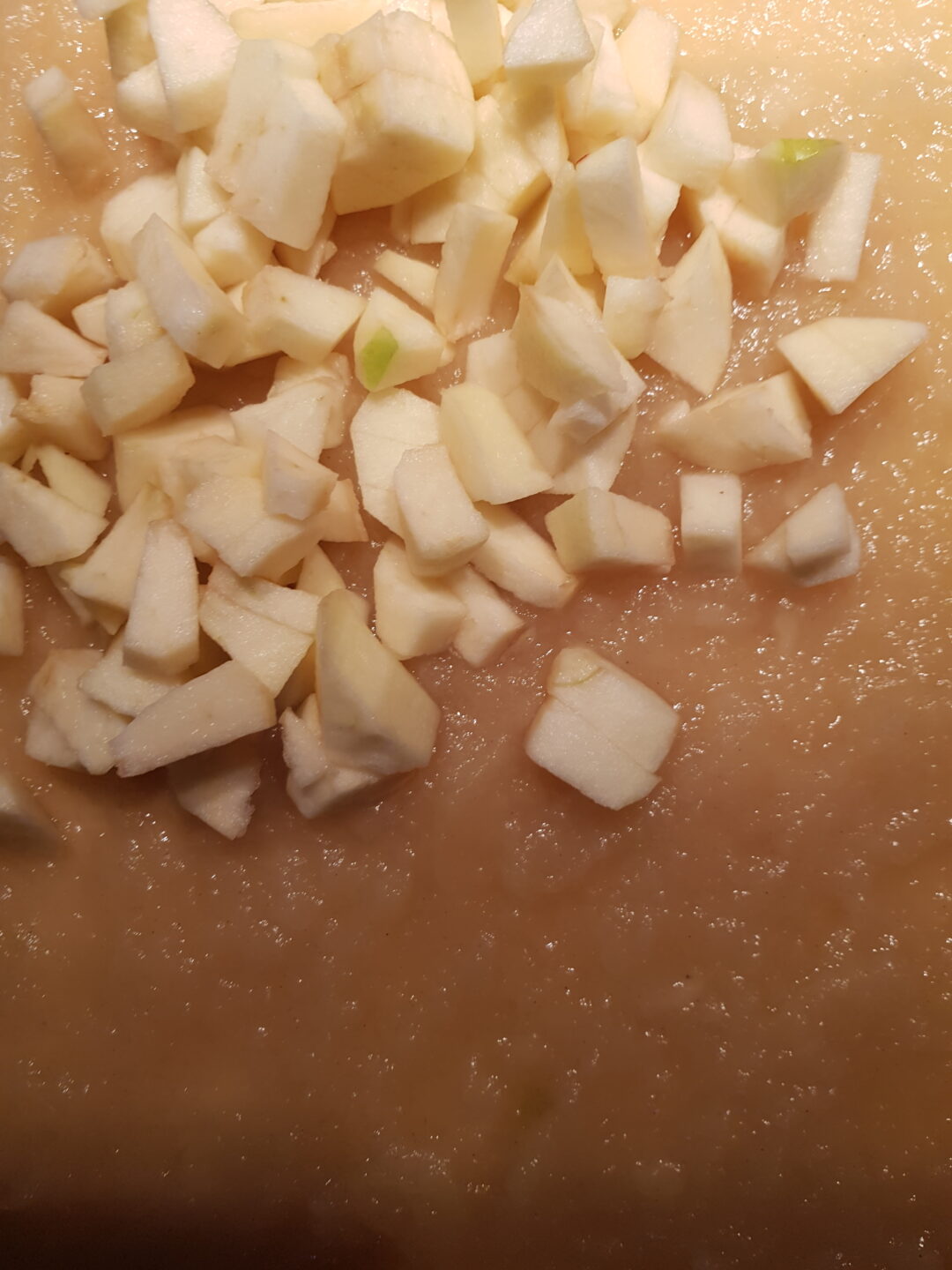 Danach schäle ich die restlichen Äpfel für den Belag, schneide auch diese in kleine Stücke und stelle sie zur Seite.