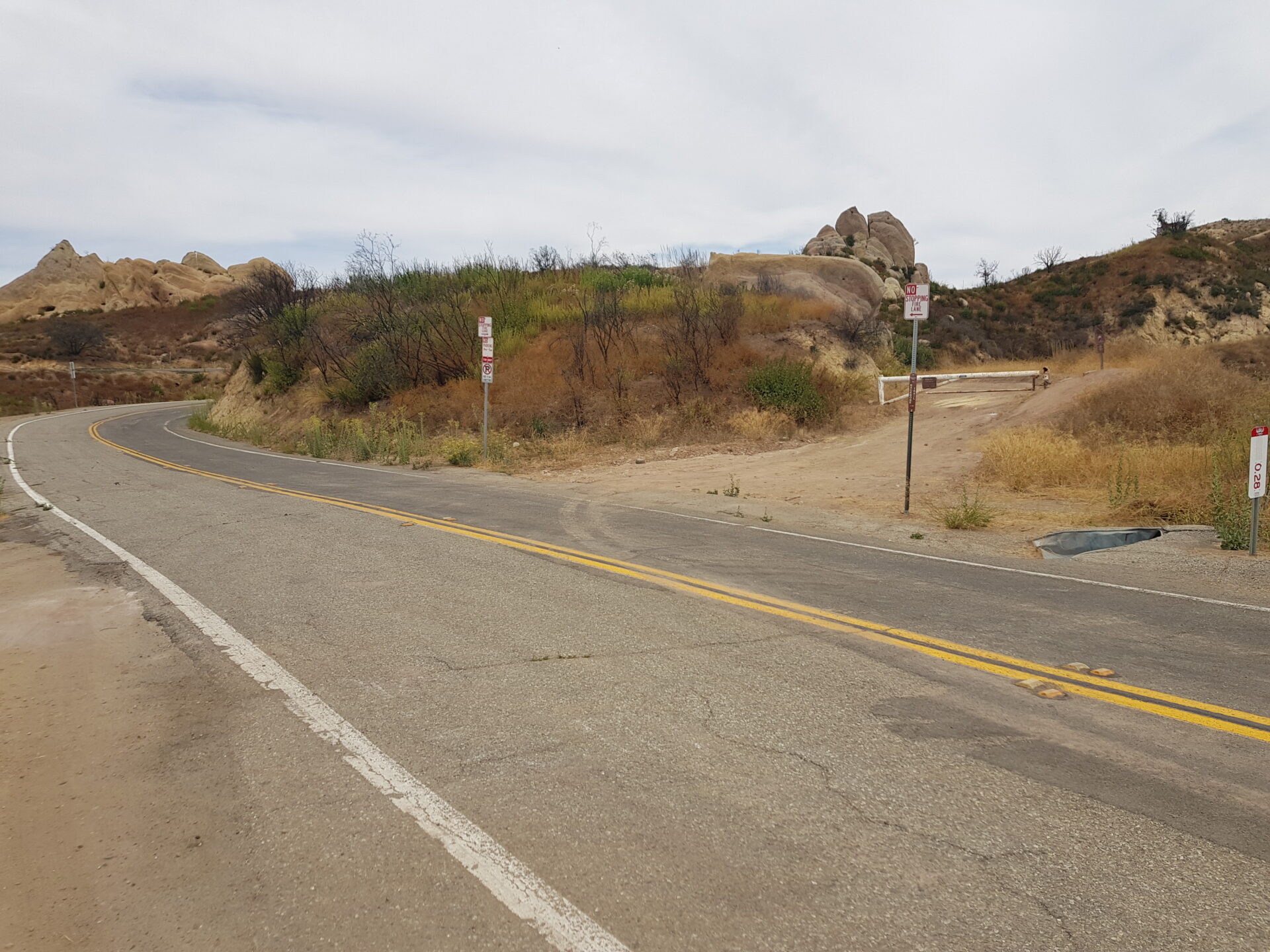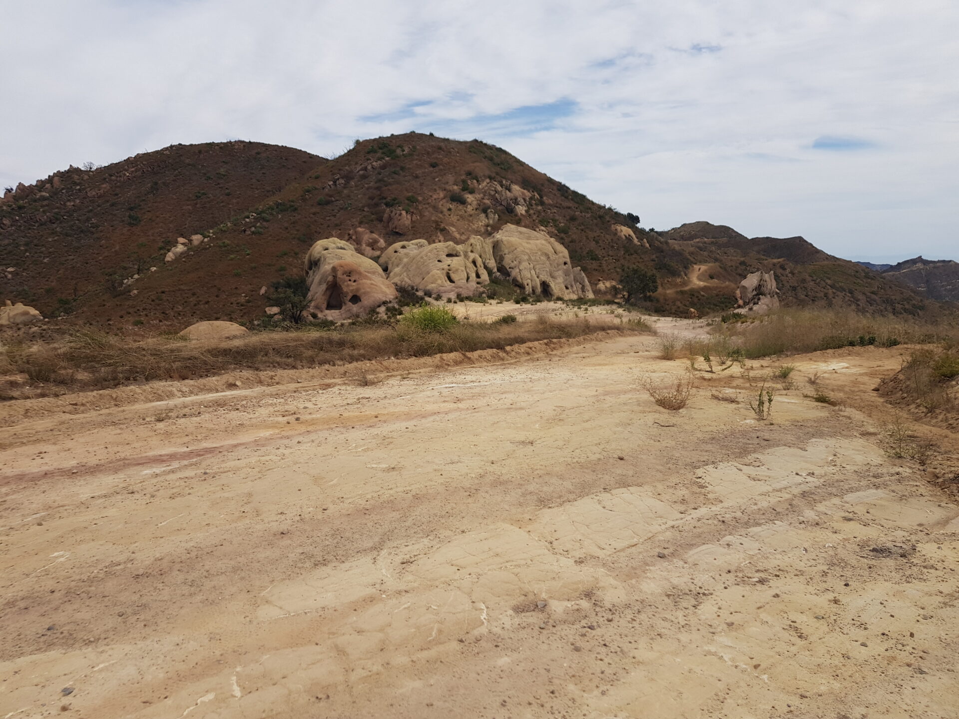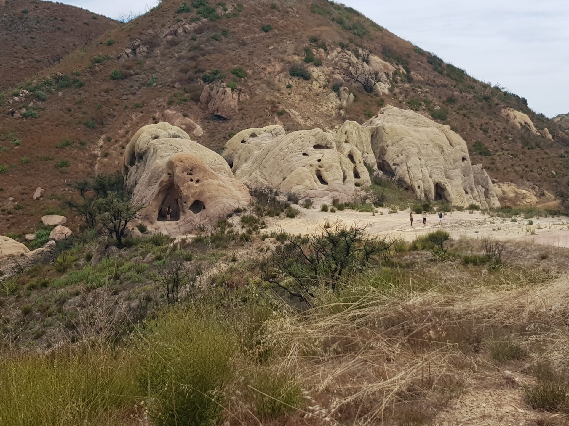 Nach etwa 8 Kilometern wechselt die Straße von Asphalt zu Schotter, und man erreicht einen kleinen Parkplatz, der Ausgangspunkt für Wanderungen im Corral Canyon Park ist. Es gibt verschiedene Wege, um die Höhlen zu erkunden. Der steile Pfad, der direkt hinter dem Parkplatz beginnt, führt über Felsen und Schotter hinauf, während eine unbefestigte Zufahrtsstraße den Zugang ebenfalls ermöglicht. Letztere ist an heißen Tagen weniger anstrengend und bietet einen etwas einfacheren Aufstieg.