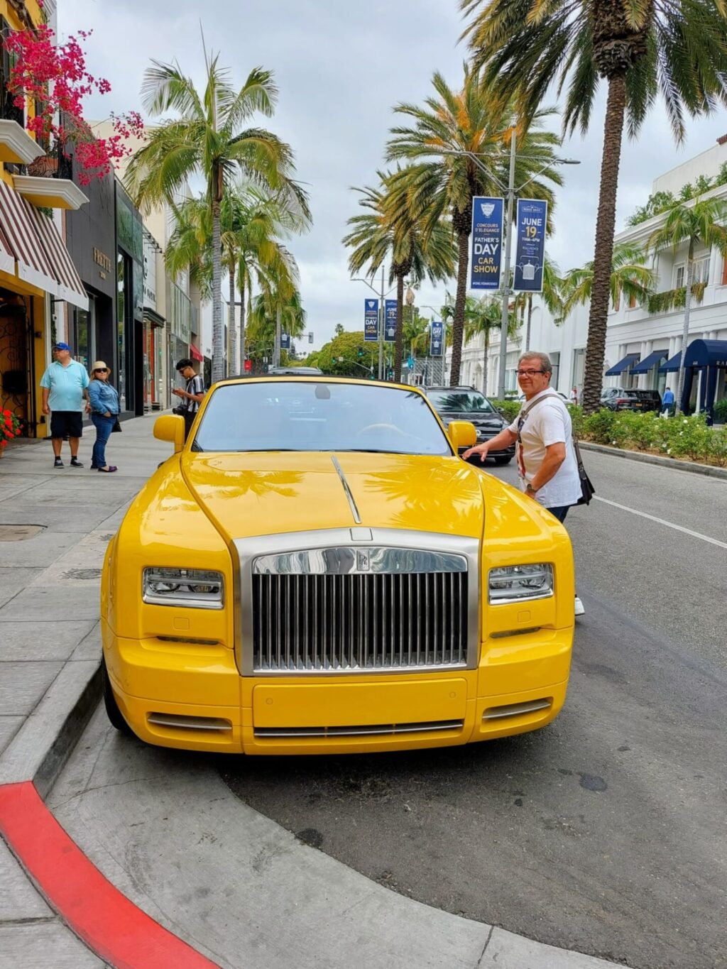 Als wir vor dem Hotel ankamen, war die Szene fast filmreif: Ein schwarzer Rolls-Royce parkte gerade ein, ein Portier in Uniform öffnete höflich die Tür, die Koffer wurden ausgeladen, Begrüßungen, Händedrucke, Sonnenbrillen, Lächeln – das war der Rodeo Drive live. Ich wollte unbedingt hinein – wenigstens auf einen Drink und ein paar Fotos. Der Portier begrüßte uns freundlich, obwohl klar war, dass wir keine Hotelgäste waren. Auf meine höfliche Frage hin erlaubte er mir das Fotografieren mit einem Lächeln. Und so standen wir da, atmeten das Flair ein und schauten dem Treiben zu.