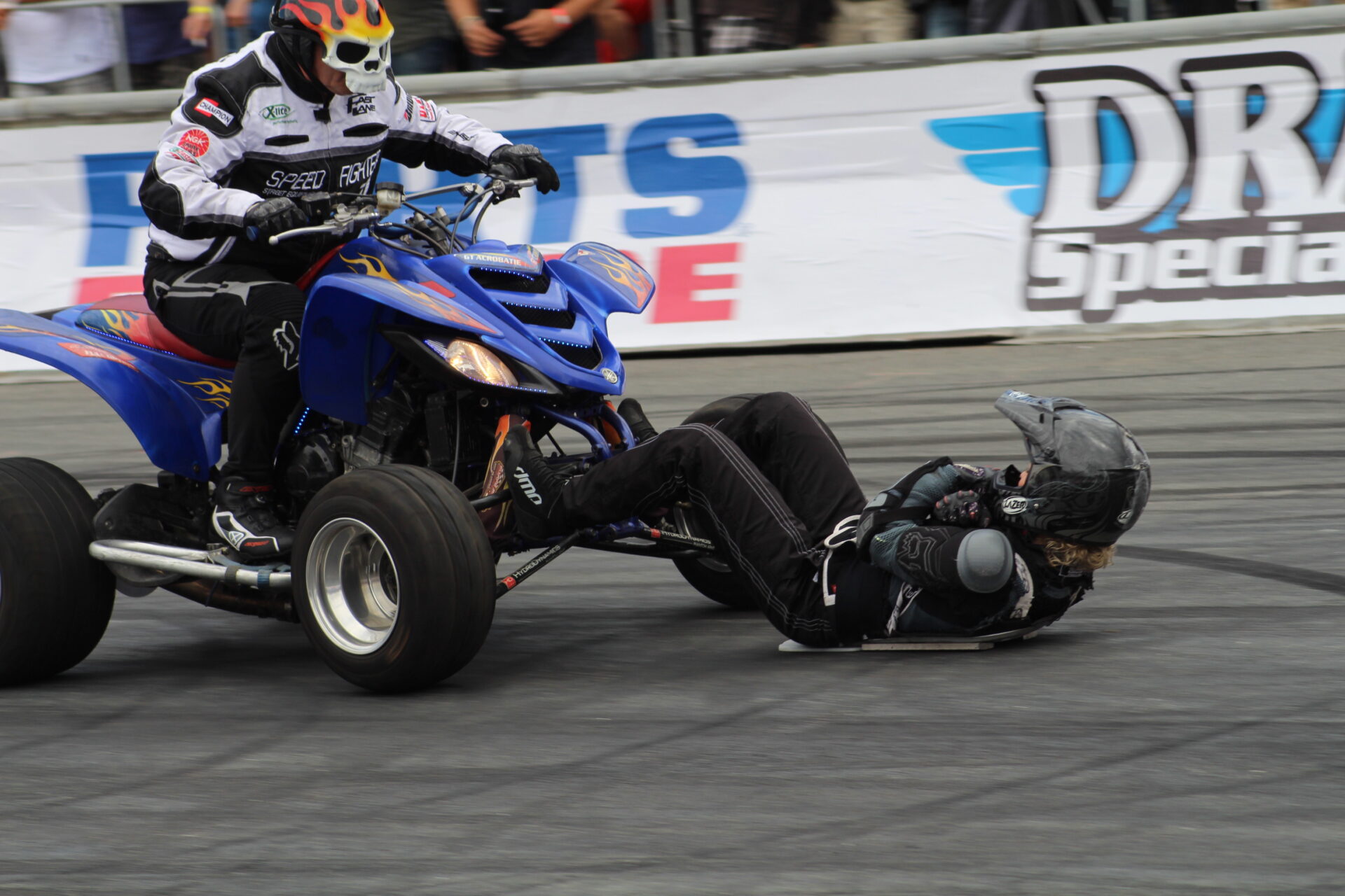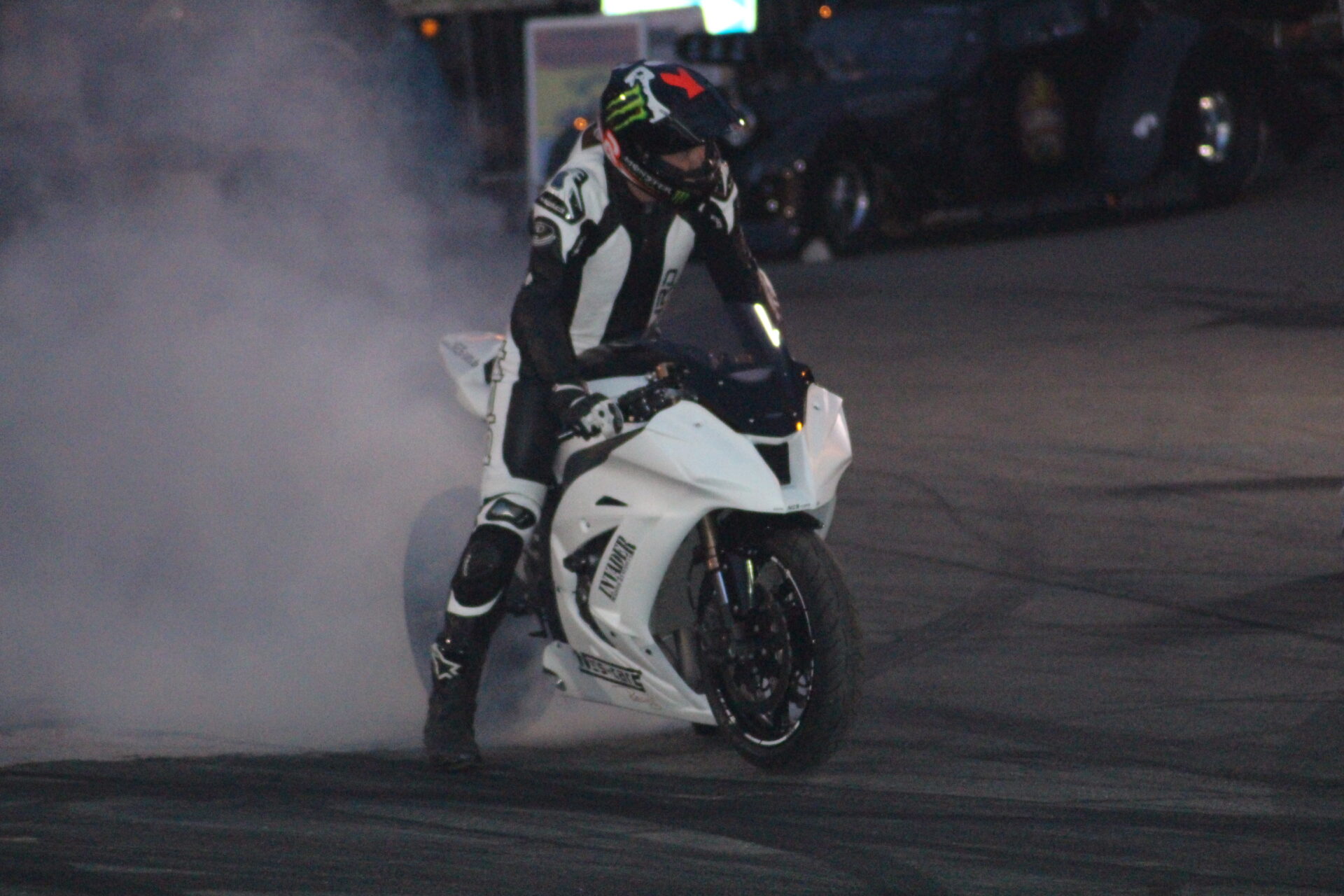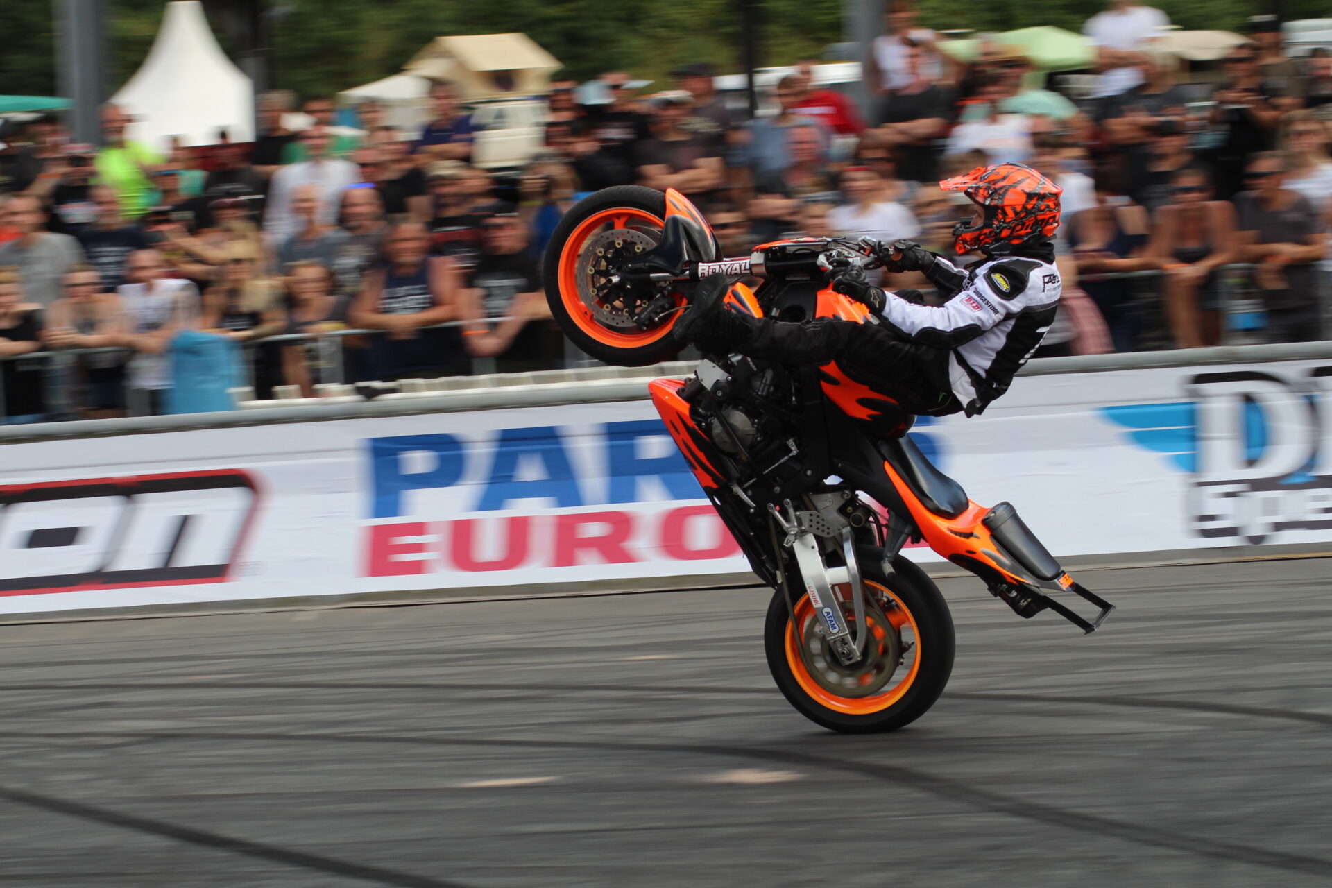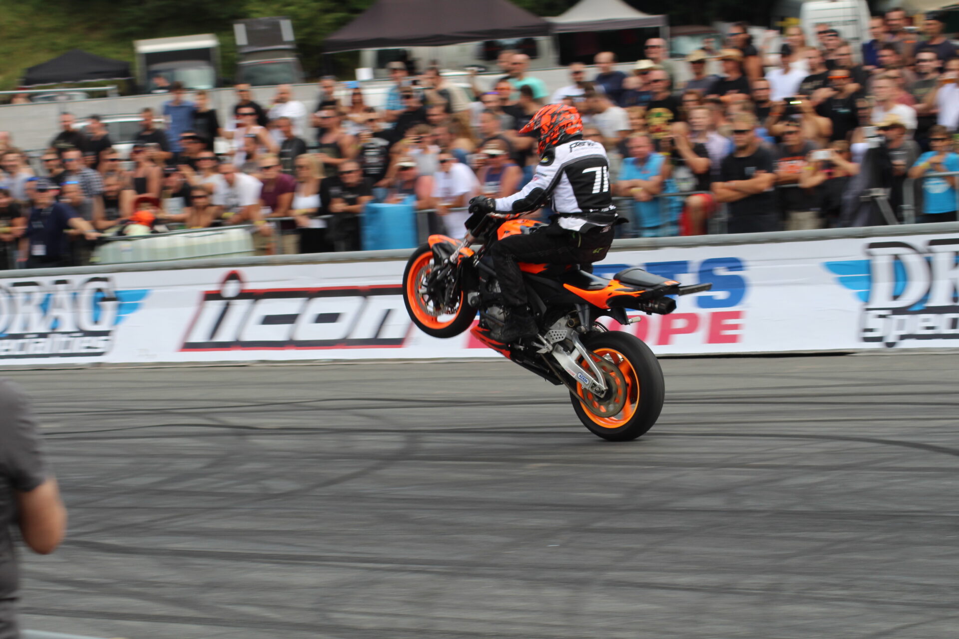 Vor allem die Nummer, mit dem Quad eine Frau auf einer Art Skateboard kräftig anzuschieben, war sensationell. Bei den Burnout Wettbewerben gab es dann richtig Gummi und Qualm bis der Reifen geplatzt ist.
