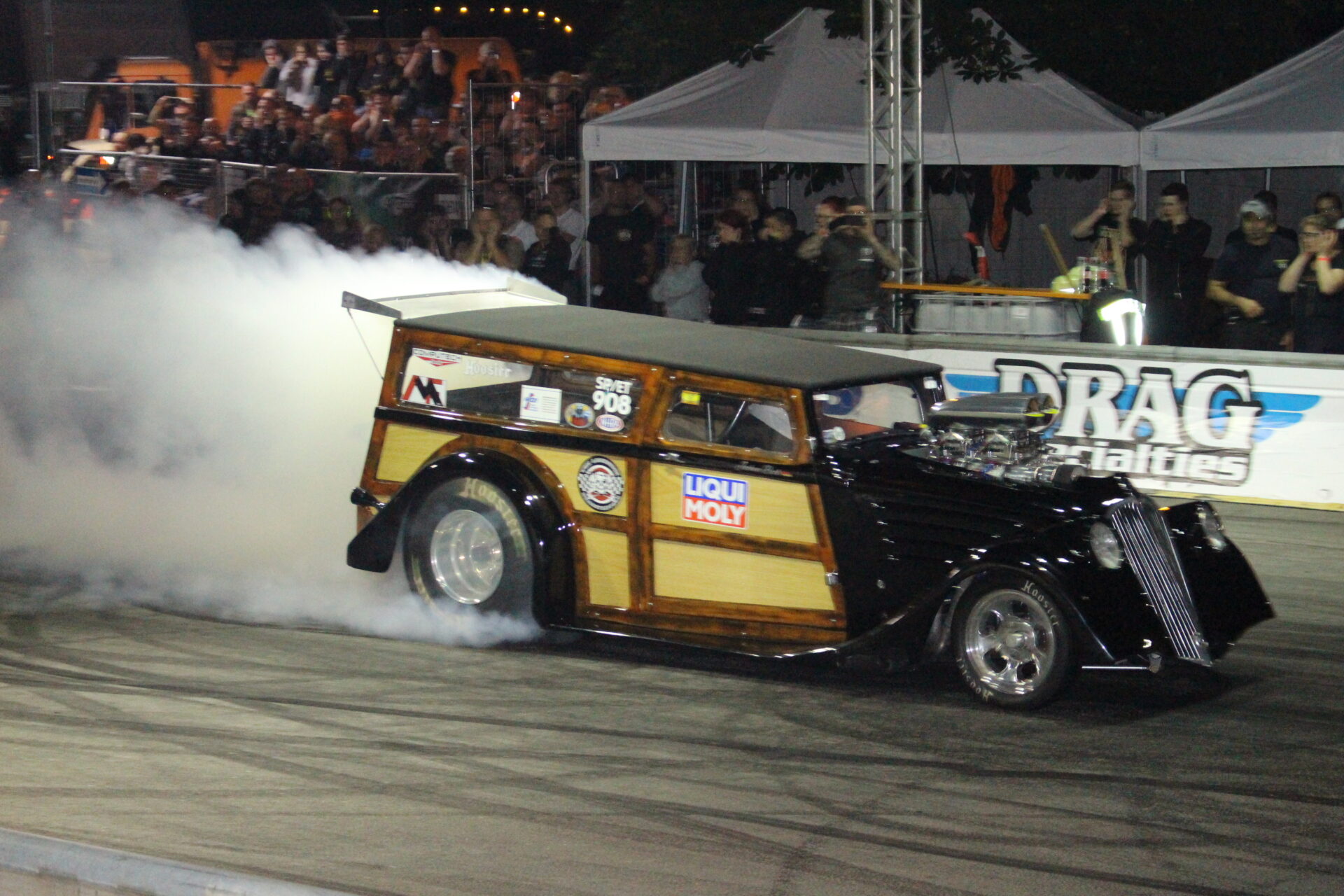 Nun war es Zeit für einen Spaziergang durchs Gelände um die Dragster anzuschauen, die an der Night Drag Race Show dabei sein würden. Dragster sind Fahrzeuge mit mehreren tausend PS, da wurde es dann richtig laut, heiß und es roch gewaltig nach verbranntem Gummi.