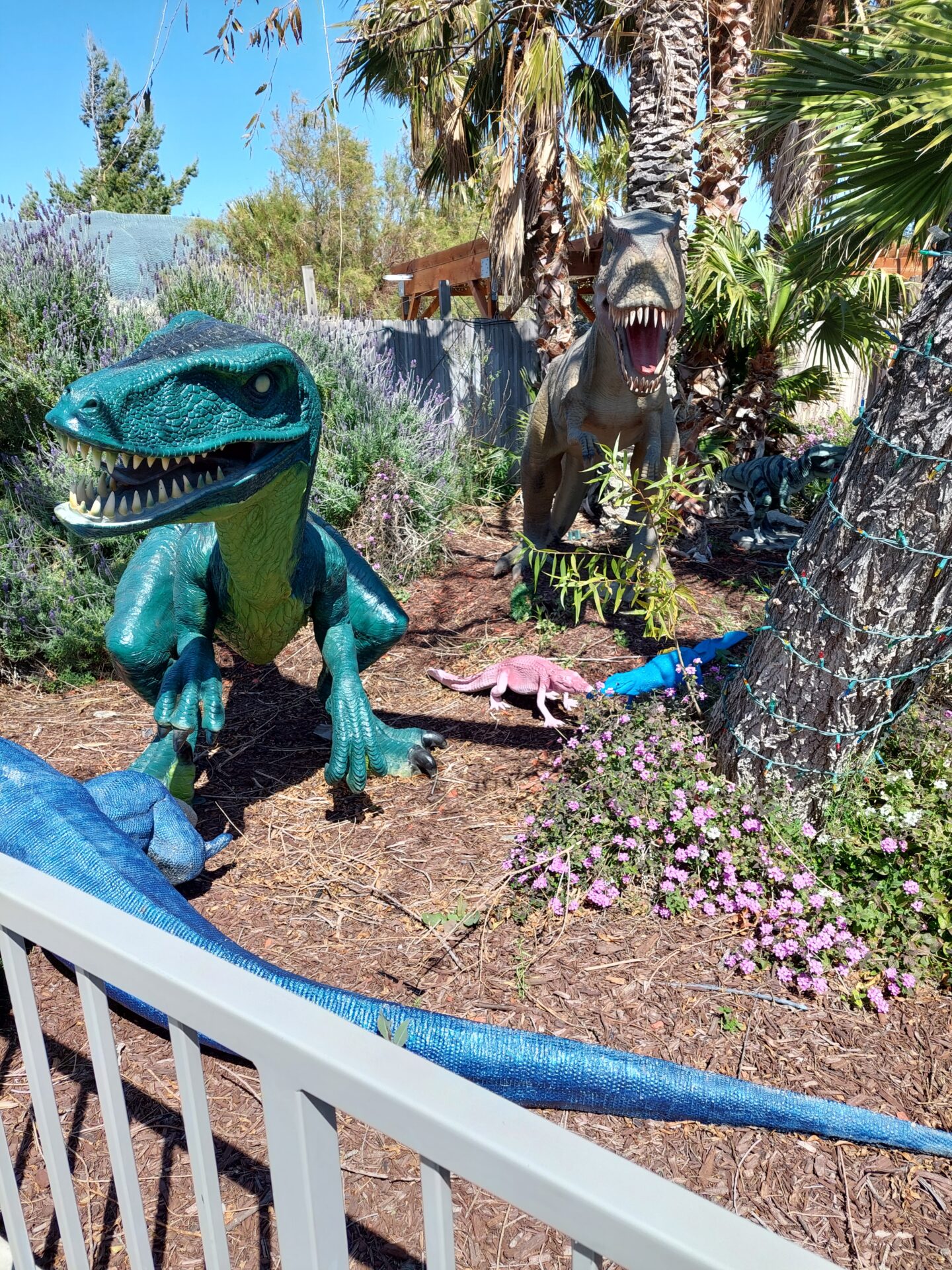 Als Klaus und ich den Park betraten, wurden wir sofort von Dinny begrüßt, dem ersten der beiden Dinosaurier und der größte von allen: ein gigantischer, grüner Brontosaurus. Neben Dinny steht sein Gefährte Mr. Rex, ein beängstigend großer Tyrannosaurus Rex. Beide sind eindrucksvolle Figuren und bieten zahlreiche Fotogelegenheiten, die wir natürlich genutzt haben.