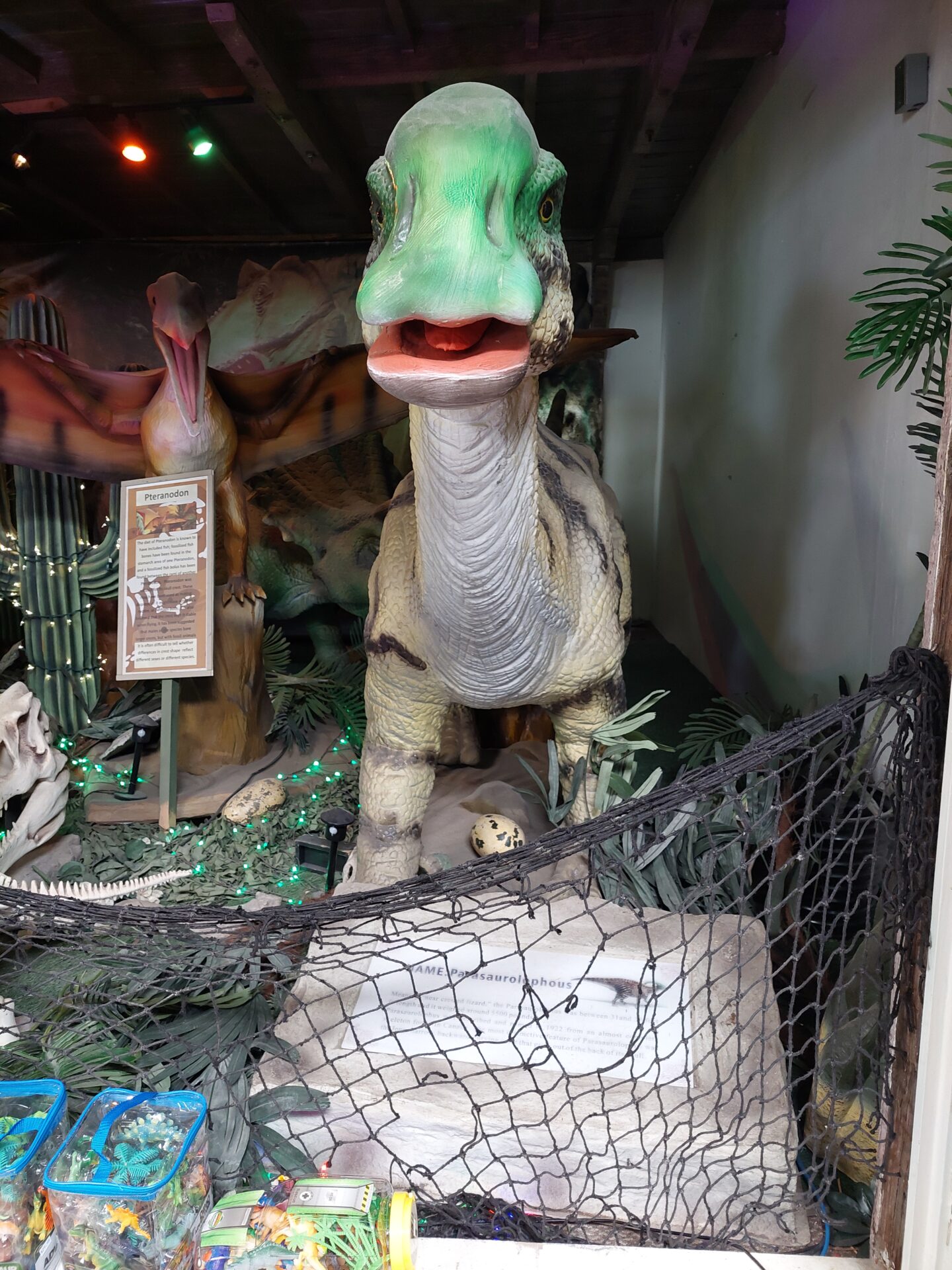 Während meiner kleinen Pause in der Sonne kletterte Klaus in den Bauch von Dinny um sich den darin befindlichen Spielzeugladen anzuschauen. Natürlich musste er auch durch die Zähne von Mr. Rex die Umgebung zu betrachten.