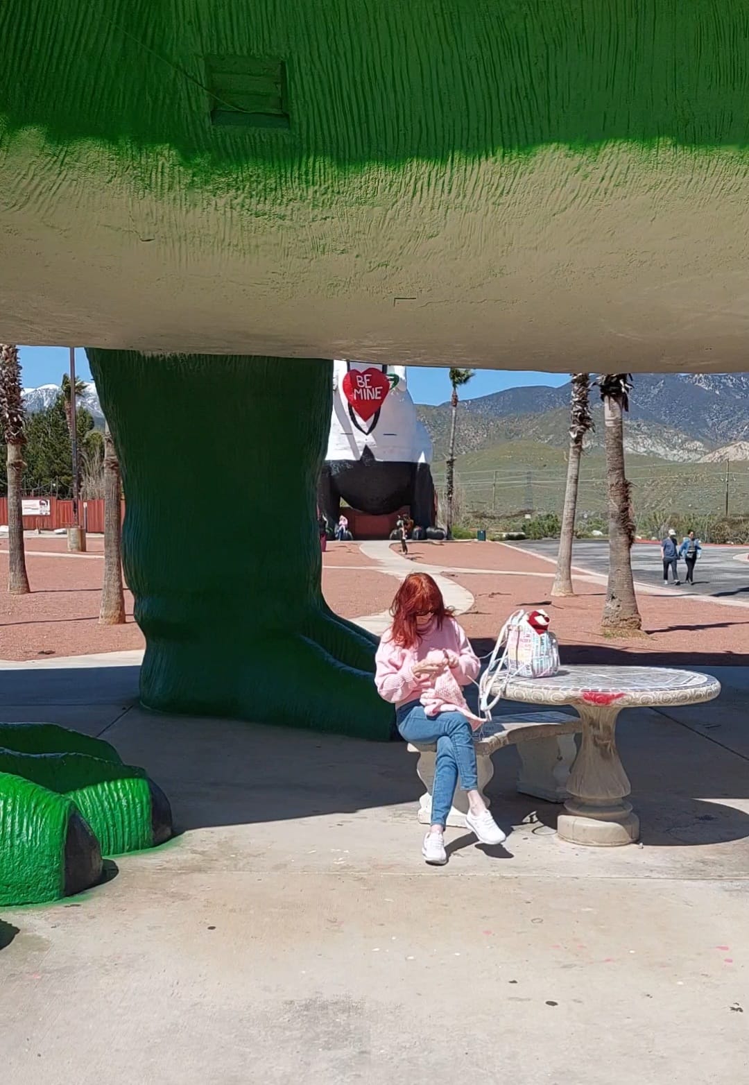 Wenn man mir gesagt hätte, dass ich auf dem Parkplatz eines Dinosauriermuseums häkeln würde, während ich von gigantischen prähistorischen Wesen umgeben bin, hätte ich ungläubig gelacht. Doch genau das ist passiert, als mein Mann Klaus und ich uns auf den Weg nach Palm Springs machten.