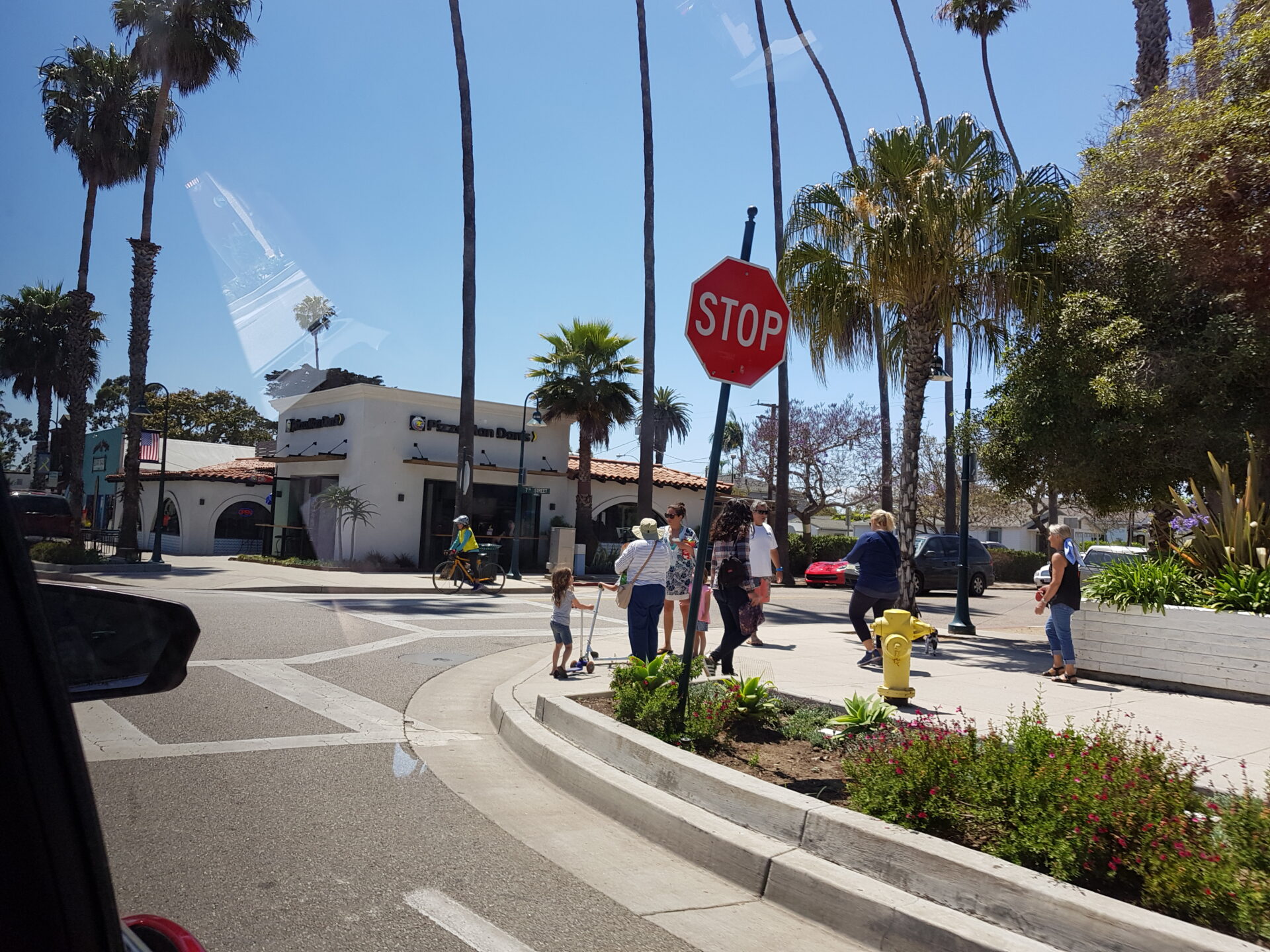 Dort gehen wir mit unserem Enkel am Strand spazieren oder laufen durch die Stadt und setzen uns danach vor ein Straßencafe oder Restaurant. Dabei beobachten wir einige Zeit das hektische Treiben der Touristen und Einwohner Santa Barbaras, die sich zahlreich auf den Gehsteigen tummeln.