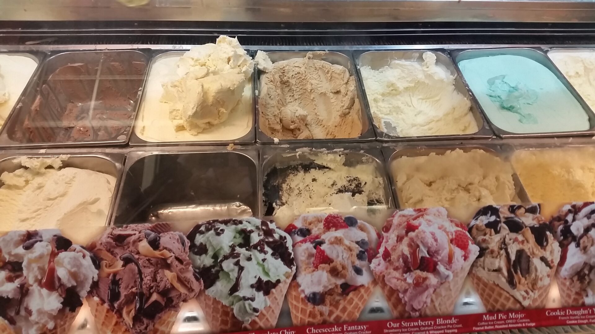 Es gibt viele Sorten Eis, die man sich aus der Vitrine aussuchen kann. Man findet die bekannten Sorten, wie beispielsweise Erdbeer, Schokolade usw. aber auch besondere Variationen wie etwa Erdnussbutter, Zuckerwatte und Käsekuchen. Dazu gibt es eine Vielfalt an Zutaten aus denen man wählen kann. Darunter verschiedene Früchte, Smarties, Müsli, Schokostückchen, Nüsse und viele mehr.