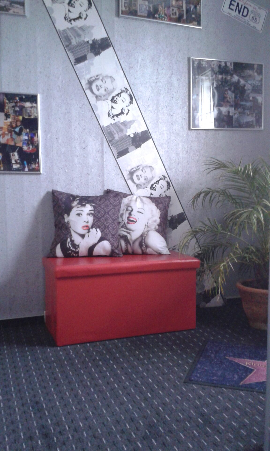 Jetzt konnte ich die Treppe ausklappen um zu sehen ob sie zu lang ist um sie gegebenenfalls zuzuschneiden. Das mußte ich nicht da sie perfekt paßte, Glück gehabt, Arbeit gespart. Nun mußte ich nur noch das Geländer anschrauben und fertig war die neue Treppe. Da wir Californien lieben haben wir den Platz darunter genutzt um uns ein kleines Stückchen Hollywood in Bayern zu bauen….. lach