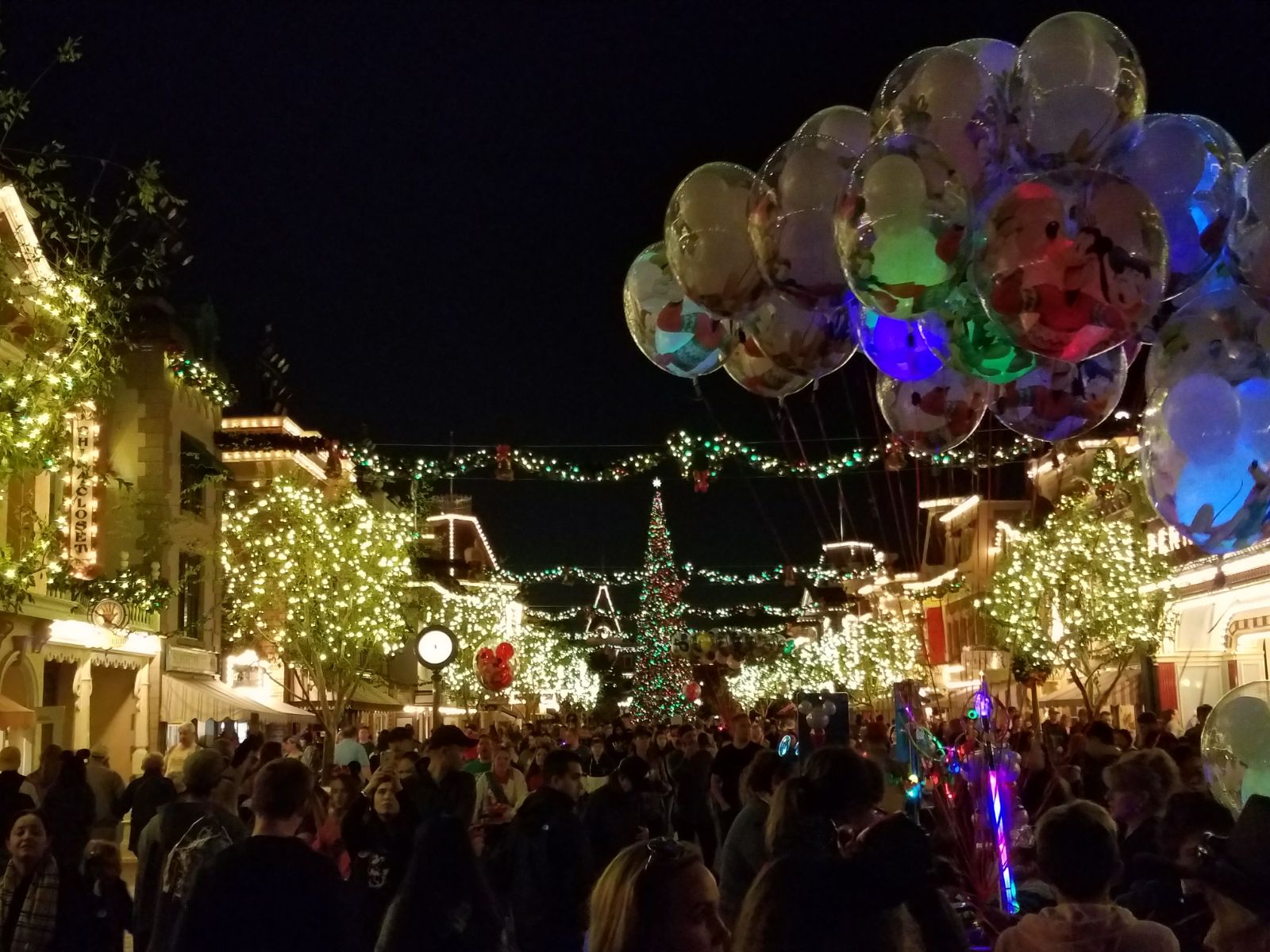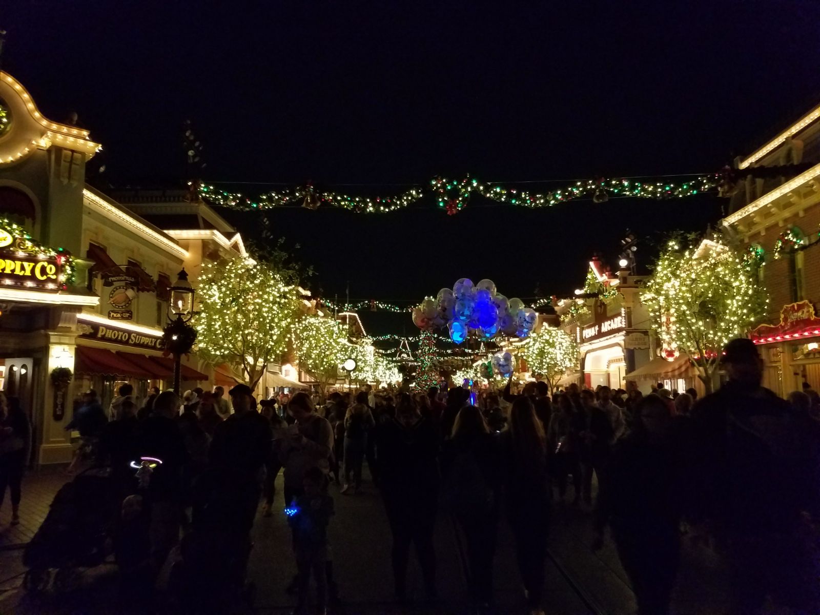 Die Main Street erleuchtet von unzähligen Lichtern ist sicherlich die am meisten beleuchteste Attraktion des Parks. Überall schwebt der Duft von Zuckerstangen, Lebkuchen und anderen Leckereien in der Luft und die Gebäude sind traumhaft dekoriert.