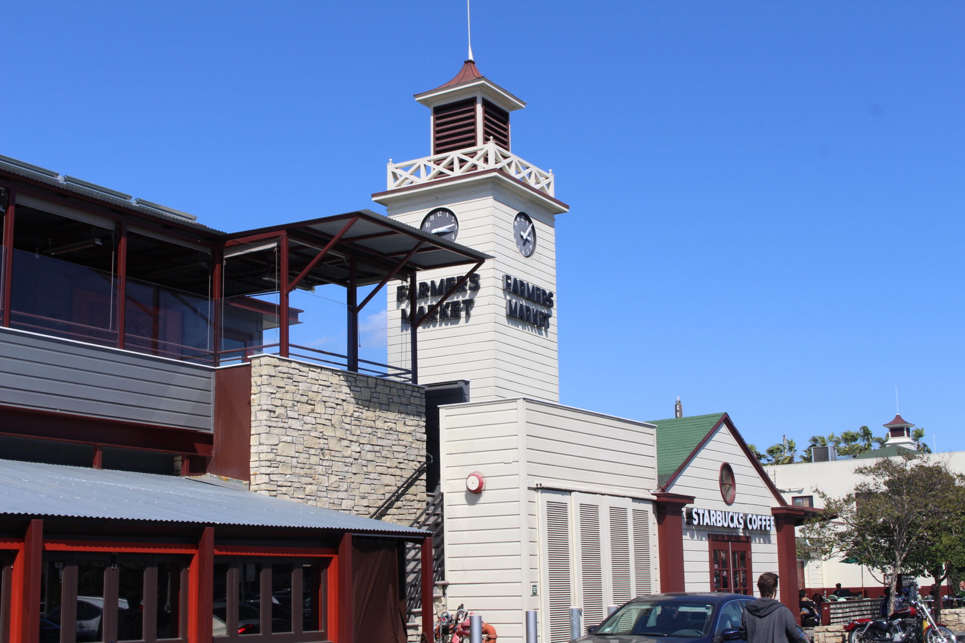 Schon von weitem sahen wir einen weißen Turm mit einer Uhr, auf dem stand Farmers Market. Es gab zwar einen riesigen Parkplatz aber wir wollten uns das Geld sparen und haben am Supermarkt gegenüber geparkt. Direkt am Turm befindet sich ein Starbucks, was liegt da näher als ich einen Frappuccino zu holen bevor es los gehts.