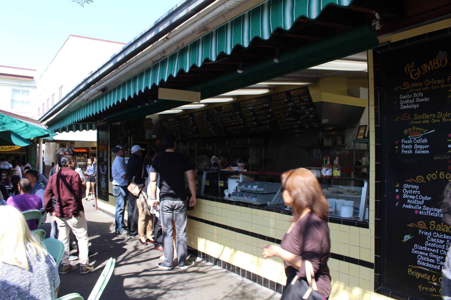 Die vielen Imbissstände sind sehr einladend, dort werden Speisen diverser Nationen angeboten. Von italienisch, libanesisch, amerikanisch, süß oder sauer, Fisch oder Fleisch bis hin zu vegetarisch. Eine unfassbare Vielfalt an Gerichten werden angeboten. Man setzt sich einfach hin wo es einem gefällt und isst unter freien Himmel, es herrscht eine tolle, entspannte Atmosphäre.