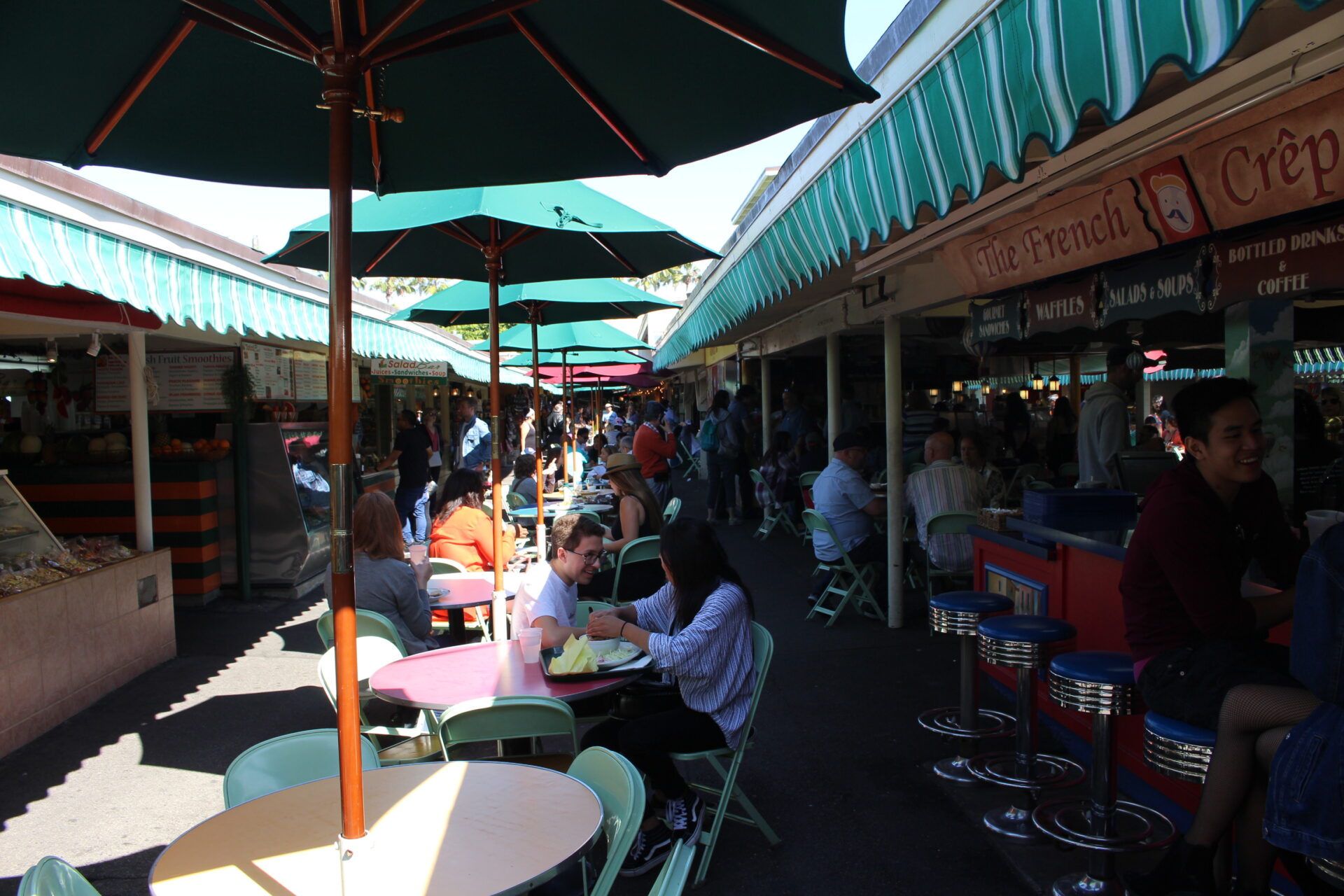 Der Farmers Market Los Angeles ist eine Mischung zwischen Markt und Einkaufszentrum, denn direkt an dem Markt grenzt die Fußgängerzone The Grove. Man kann laufen oder mit einer klassisch aufgemachten Straßenbahn vom Farmers Market aus hinfahren, was eine tolle Abwechslung ist.