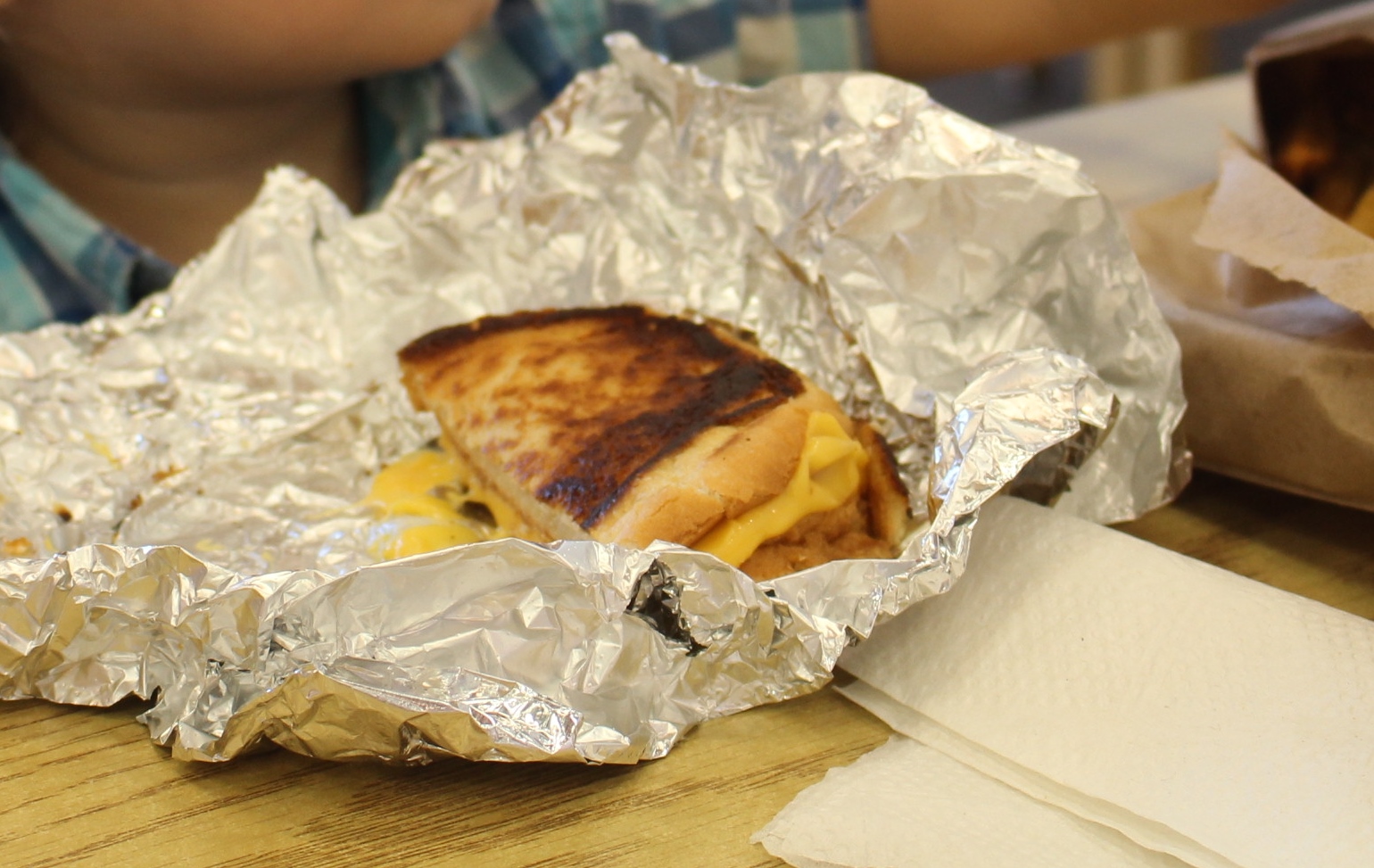 Unser Favorit bei Five Guys ist der Bacon Cheeseburger und Noah liebt das Grilled Cheese Sandwich über alles.