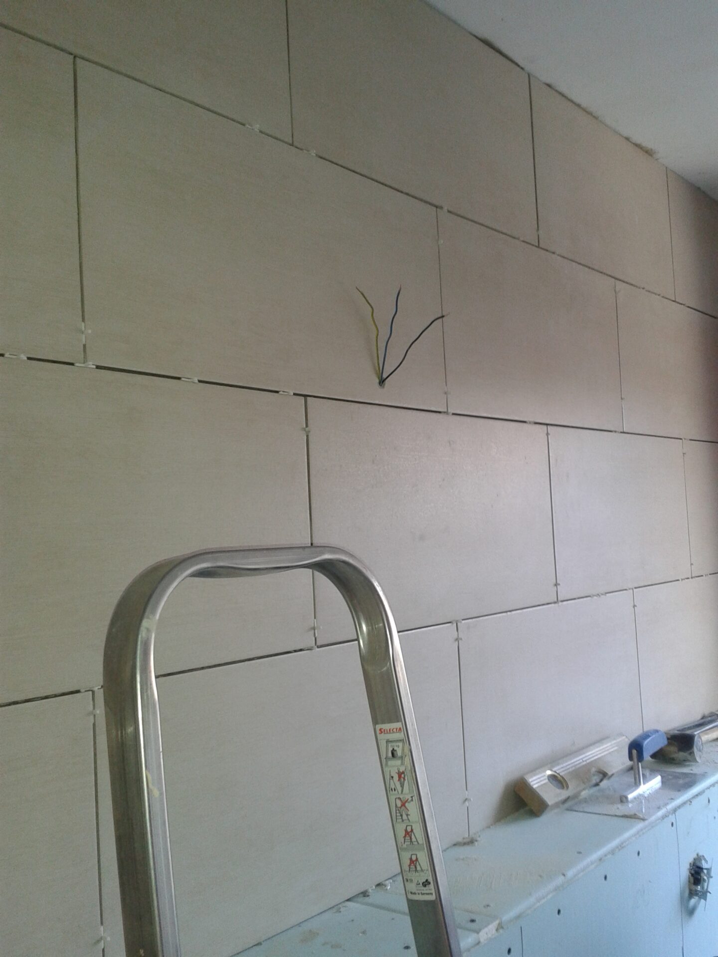 Nun kommt Schritt 5 zum neuen Bad, Fliesen auf Fliesen verlegen.
