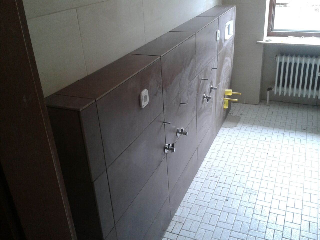 Alte Fliesen bei einer Badrenovierung rausreißen zu müssen kostet viel Mühe, Zeit und macht jede Menge Dreck. Da bei uns die alten Fliesen noch fest an der Wand und unbeschädigt waren, haben wir uns entschlossen uns diese Arbeit zu sparen. Unser Bauschutt hat sich dadurch erheblich reduziert und Kosten haben wir auch gespart.