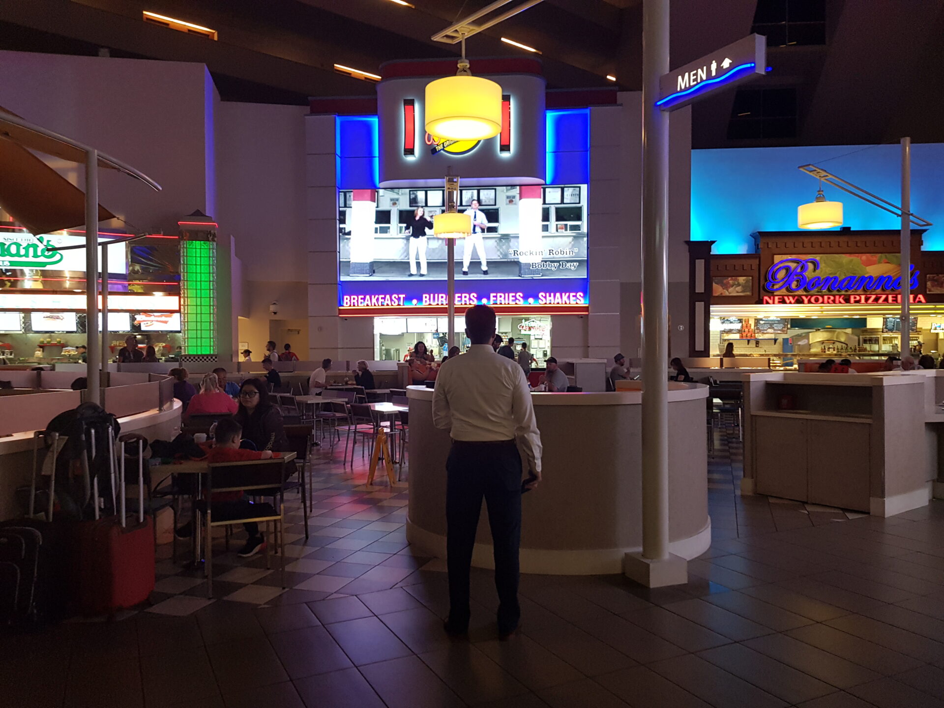 Besonders für Familien mit Kindern ist dieser Ort perfekt. Die Restaurants Johnny Rockets, Bonanno’s Pizzeria, Pan Asian Express und LA Subs & Salads bieten eine breite Auswahl, und da es selten überfüllt ist, findet man immer einen Platz.