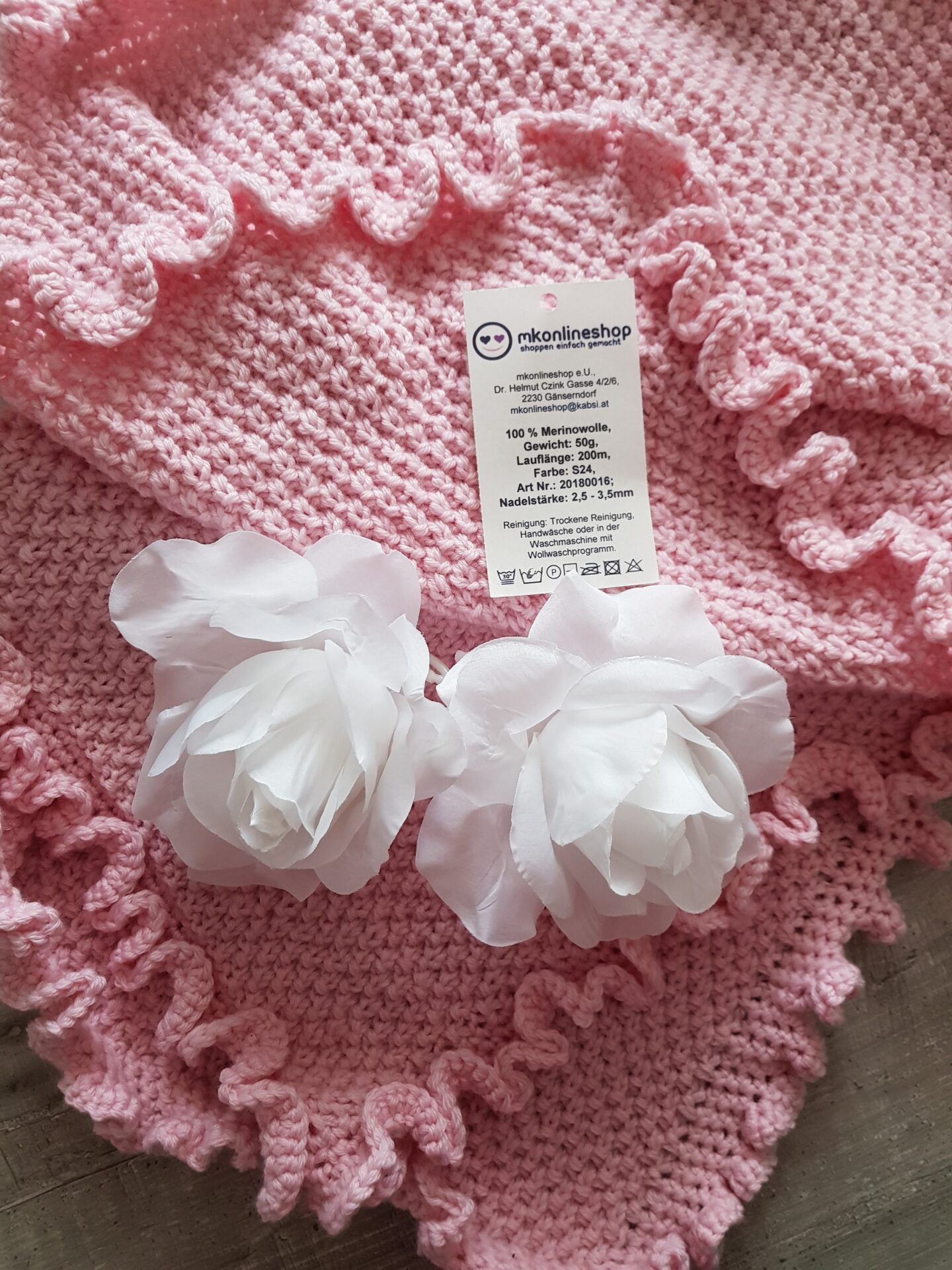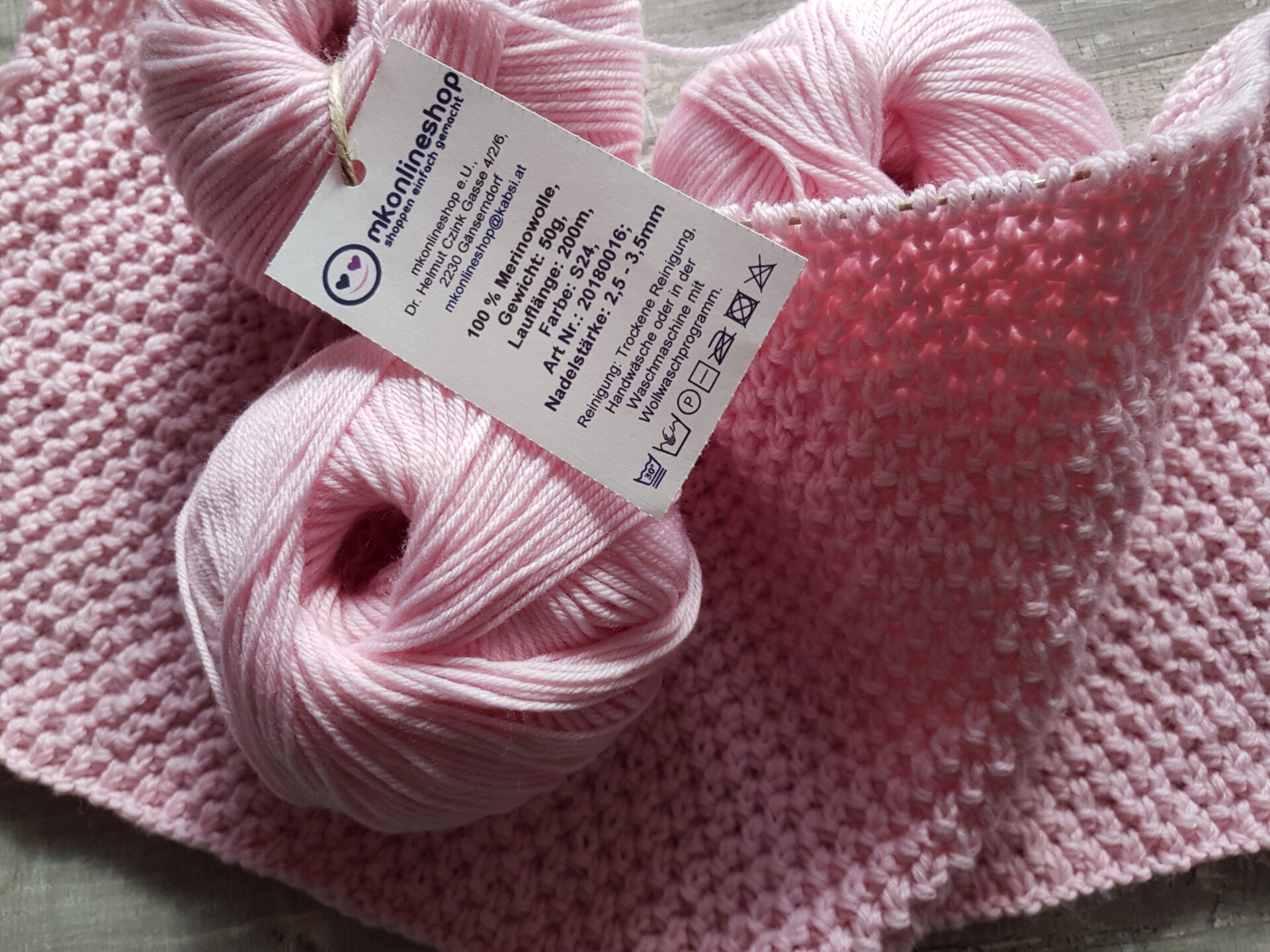Vor einiger Zeit brachte mir der Postbote ein großes Überraschungspäckchen mit 100% Merino Wolle in den Farben rosa, pink, hellblau und weiß. Da hat sich mein Strickerherz natürlich sehr gefreut, denn ich stricke meine Babysachen sehr gerne mit Merino Wolle.