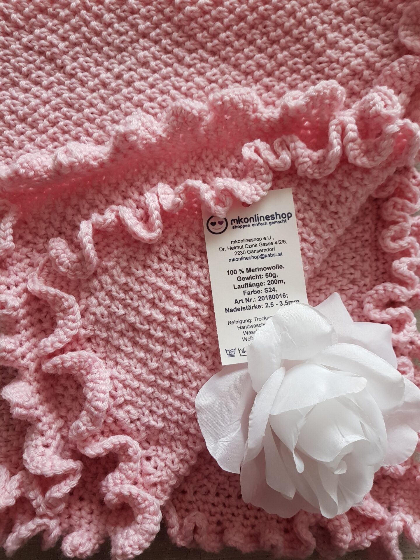 Süße handgestrickte Babydecke mit Rüsche für die kleine Prinzessin!