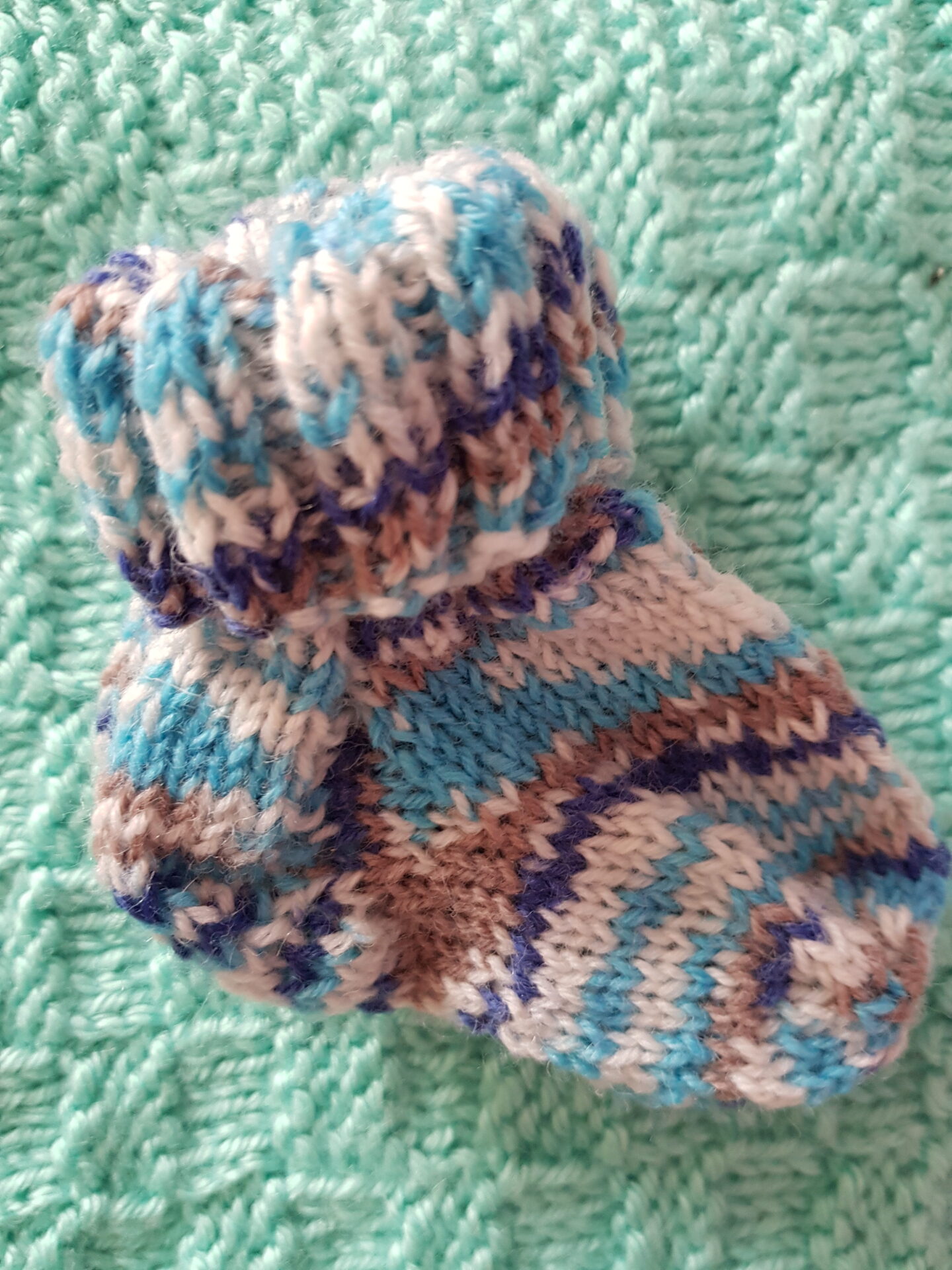 Ich kann mich noch gut an die Schulzeit erinnern, da haben wir nämlich Babysöckchen gestrickt. Meine waren damals Babyblau und soweit ich mich erinnere, hatte meine Mama auch viel Freude beim stricken. Ich kann es bis heute nicht wirklich 😉