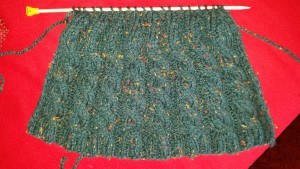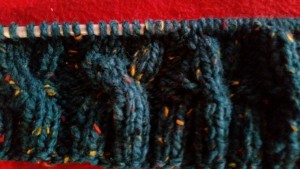 Nun in jeder zweiten Reihe im Zopf 2 Maschen rechts zusammenstricken bis nur noch 1 Masche rechts und eine Masche links vorhanden sind.
