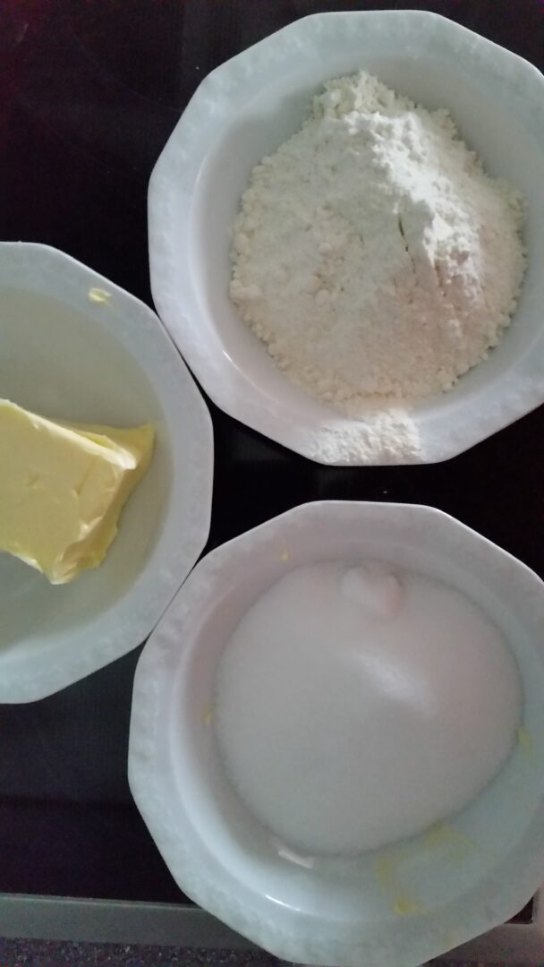 125 g Zucker, 125 g Butter und 125 g Mehl