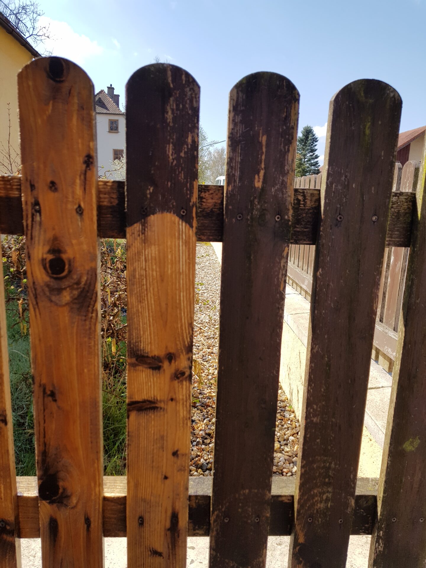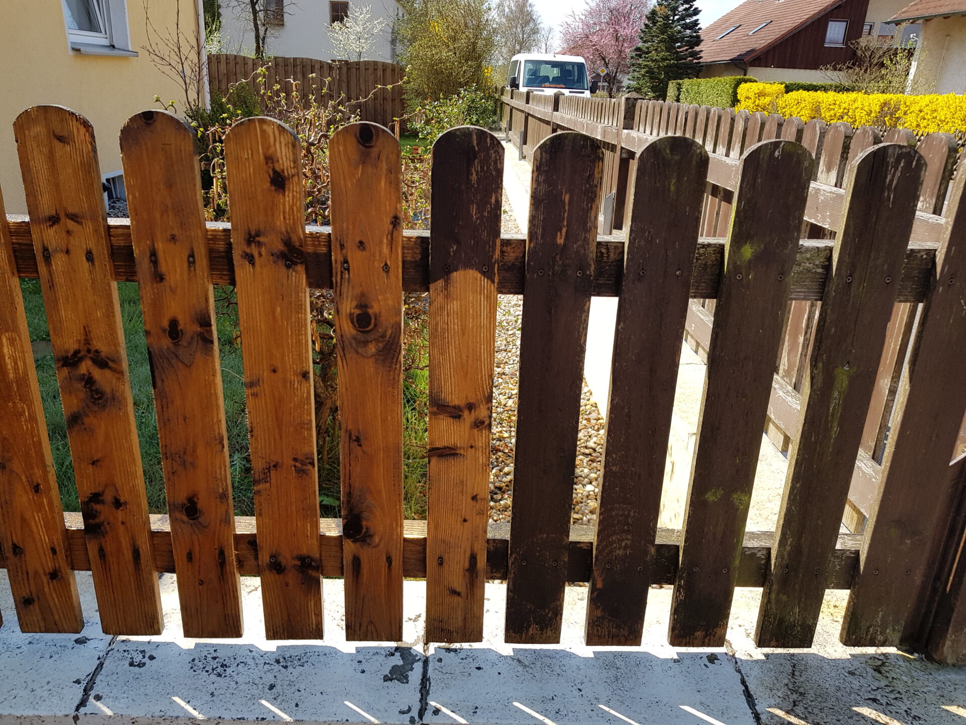 Am Freitag werde ich dann den durchgetrockneten Zaun streichen, das hätte ich ohne Hochdruckreiniger nicht so schnell geschafft.