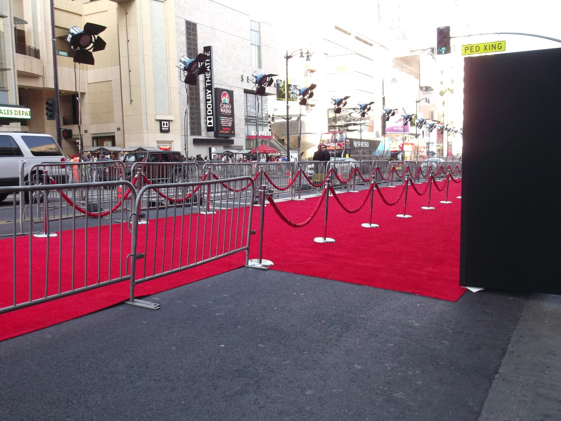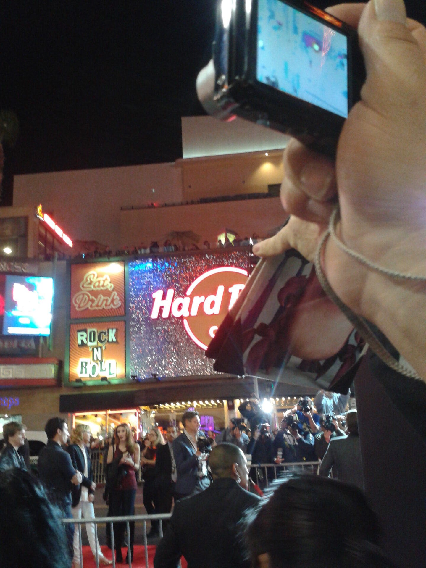 Hollywood Premiere Delivery Man 2013 im El Capitan Theatre in Los Angeles. Der Zufall hat und hingeführt und an dem Spektakel teilhaben lassen. Eigentlich wollten wir nur im Hard Rock Cafe, das sich am Hollywood Blvd befindet etwas trinken gehen und noch einige Souvenirs kaufen aber von weitem sahen wir schon die Menschenmengen. Darunter Polizei und Security. Die Straße war gesperrt und rote Teppiche lagen vor dem El Capitan Theatre.