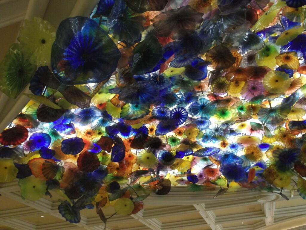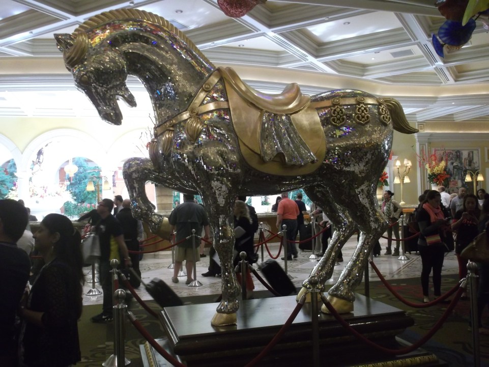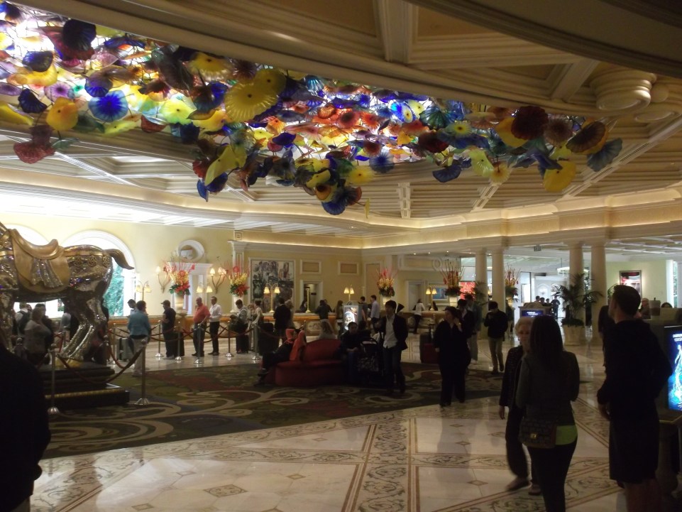 Schon als wir das erste Mal die großzügige Eingangshalle betraten, waren wir beeindruckt von der Eleganz und dem Luxus um uns herum. Die Decke zieren mundgeblasene, farbenfrohe Glasblumen des Künstlers Dale Chihuly und in der Mitte steht ein Pferd komplett mit Spiegelmosaik belegt.
