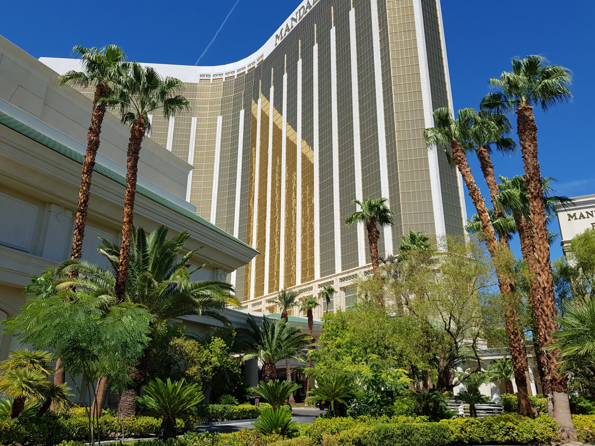 Das Mandalay Bay Hotel Bay Resort & Casino ist durch seine goldene Fassade schon von Weitem zu sehen und sticht einem ins Auge. Es beherbergt zum Beispiel einen Aquariumtunnel mit Haien und den beeindruckenden riesigen Poolkomplex, der im Stil einer Tropeninsel gestaltet ist.