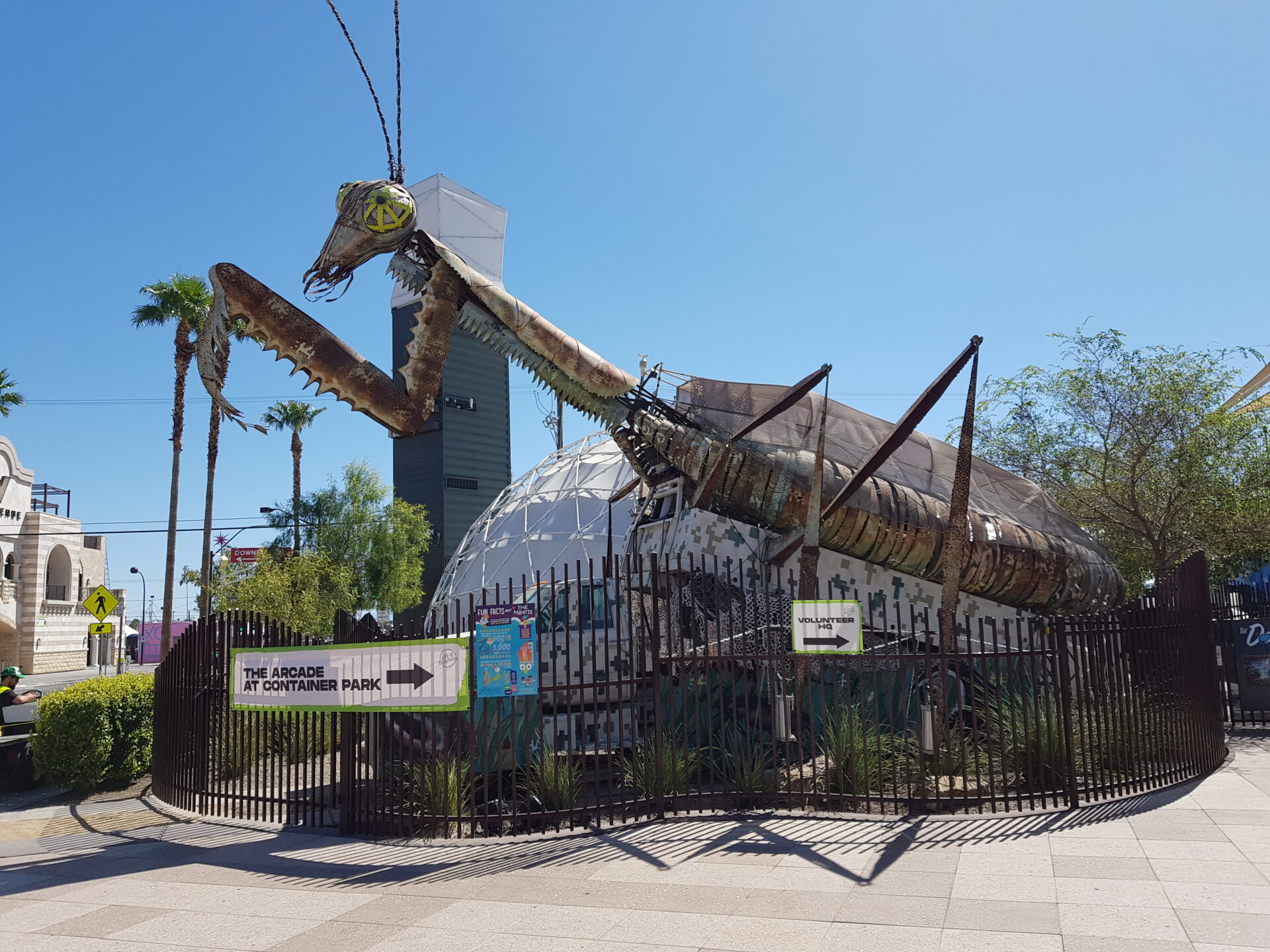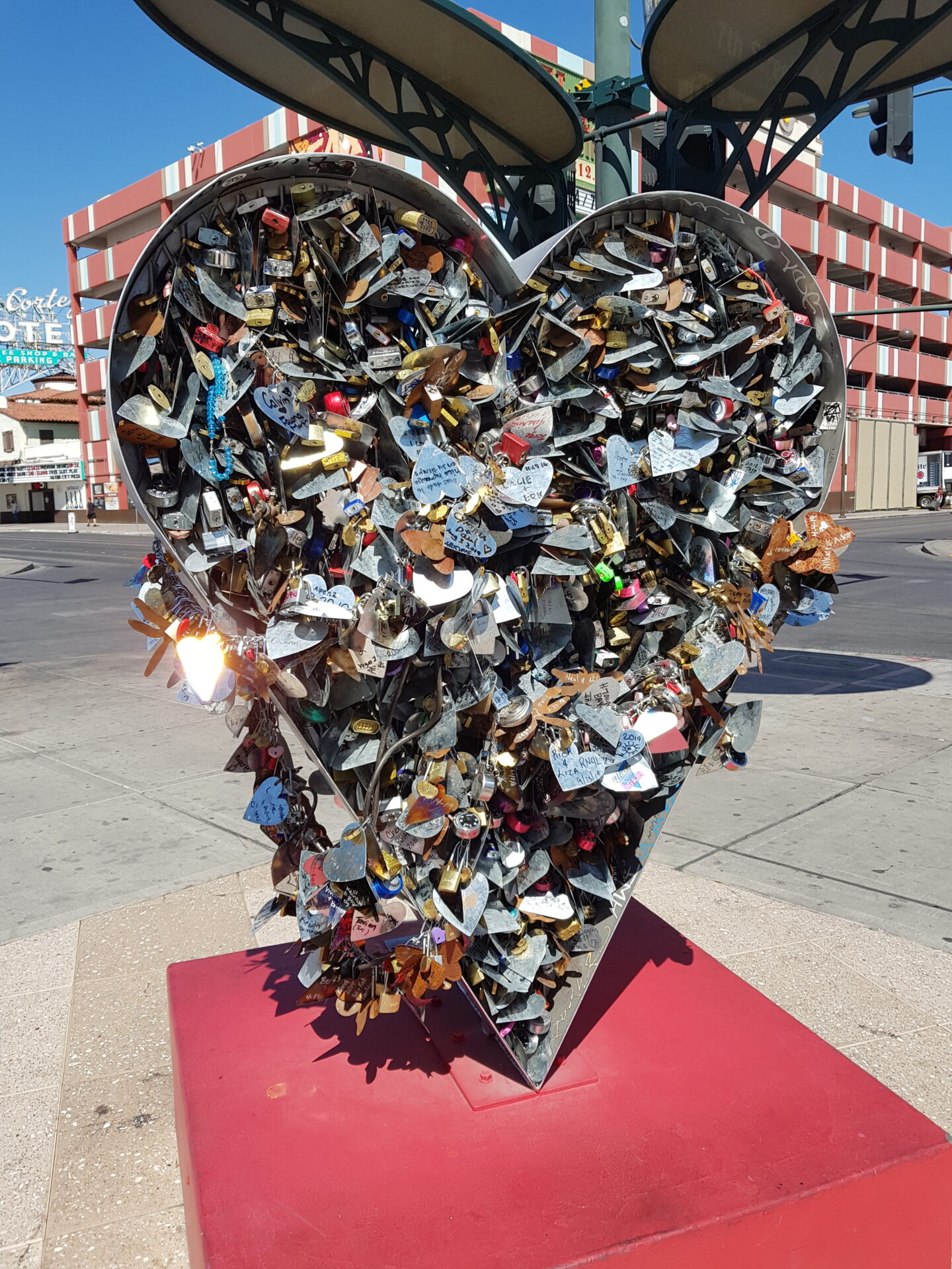 Der Container Park im Zentrum von Las Vegas ist ein Open-Air-Einkaufszentrum, das komplett aus Containern besteht. Hier gibt es zahlreiche Restaurants und Geschäfte, die alle in kreativ gestalteten Containern untergebracht sind. Vor dem Park befinden sich zwei besonders beliebte Fotomotive: eine riesige Gottesanbeterin und ein Herz, das mit Liebesschlössern bedeckt ist. Besonders bei Nacht, wenn die Skulpturen beleuchtet sind und die Gottesanbeterin Feuer spuckt, entstehen hier beeindruckende Fotos.