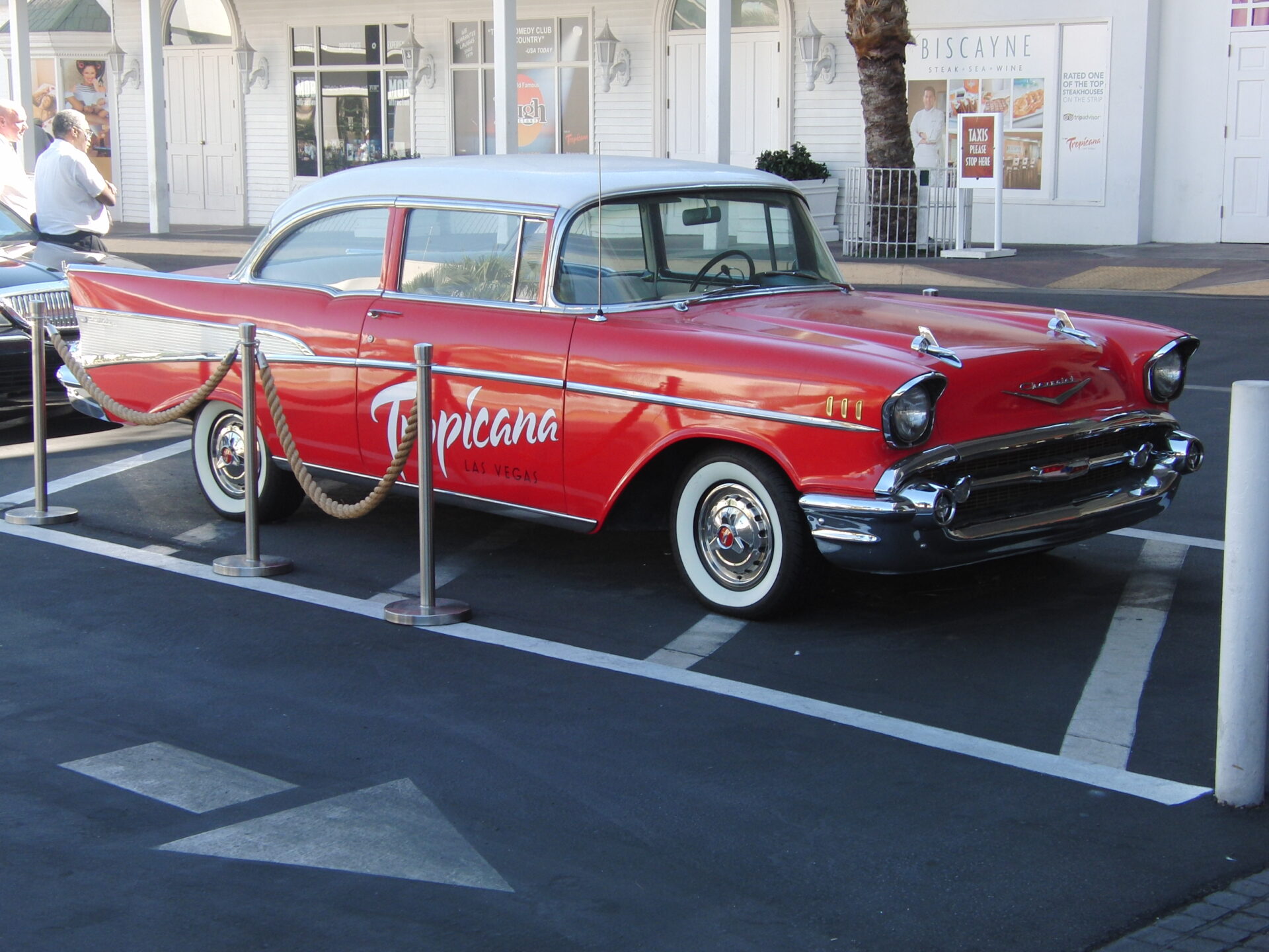Das Tropicana Hotel wurde in den 1950er Jahren erbaut und ist eines der älteren Hotels in Las Vegas. Es versprüht den Charme vergangener Tage und ist ein echter Geheimtipp für alle, die nostalgische Fotos lieben. Besonders der rote Chevrolet von 1957, der vor dem Hotel geparkt ist, ist ein beliebtes Fotomotiv. Ein Bild mit diesem klassischen Auto vor dem Hintergrund des Tropicana Hotels bringt den Glamour vergangener Zeiten zurück und ist ein echtes Highlight für dein Instagram-Profil.