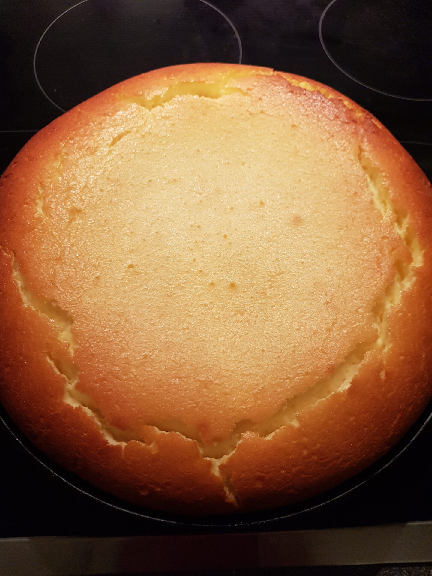 Wer die Risse auf der Oberfläche des Käsekuchens nicht mag, kann beim Backen eine kleine Schale mit Wasser mit in den Ofen stellen. Ich habe es aber nicht gemacht, weil es mich nicht stört.