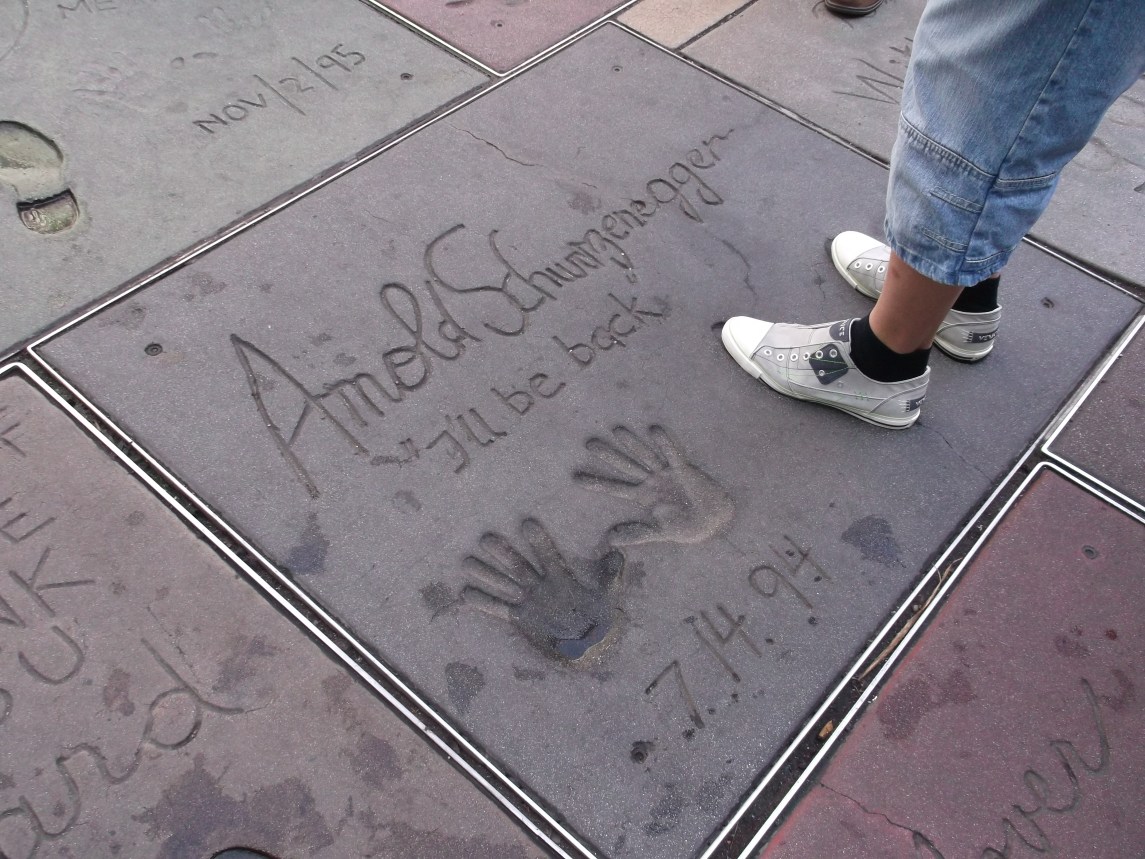 Das Chinese Theatre zählt zu den beliebtesten Sehenswürdigkeiten in Los Angeles am Walk of Fame. Es ist bekannt durch die Hand und Schuhabdrücke sowie die Signaturen prominenter Stars, die sich in feuchtem Beton im Eingangsbereich des Kinos verewigt haben. Hier kann man sich dabei ablichten lassen, wie man in die Fußabdrücke von Arnold Schwarzenegger steigt oder seine Hände, mit denen von Tom Hanks vergleicht.