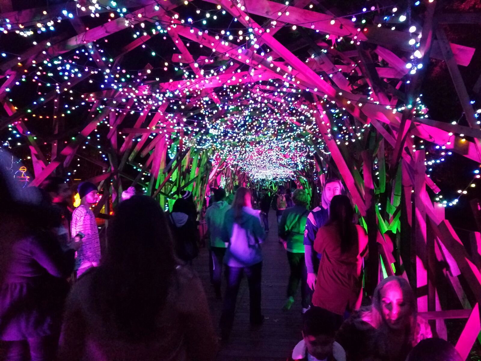 Die mit unzähligen vielen, bunten Lichtern beleuchteten Gehwege waren sehr einladend wie Tunnel gestaltet. Geht man hindurch fühlt man sich als wandelt man unter einem strahlend, leuchtendem Sternenhimmel.