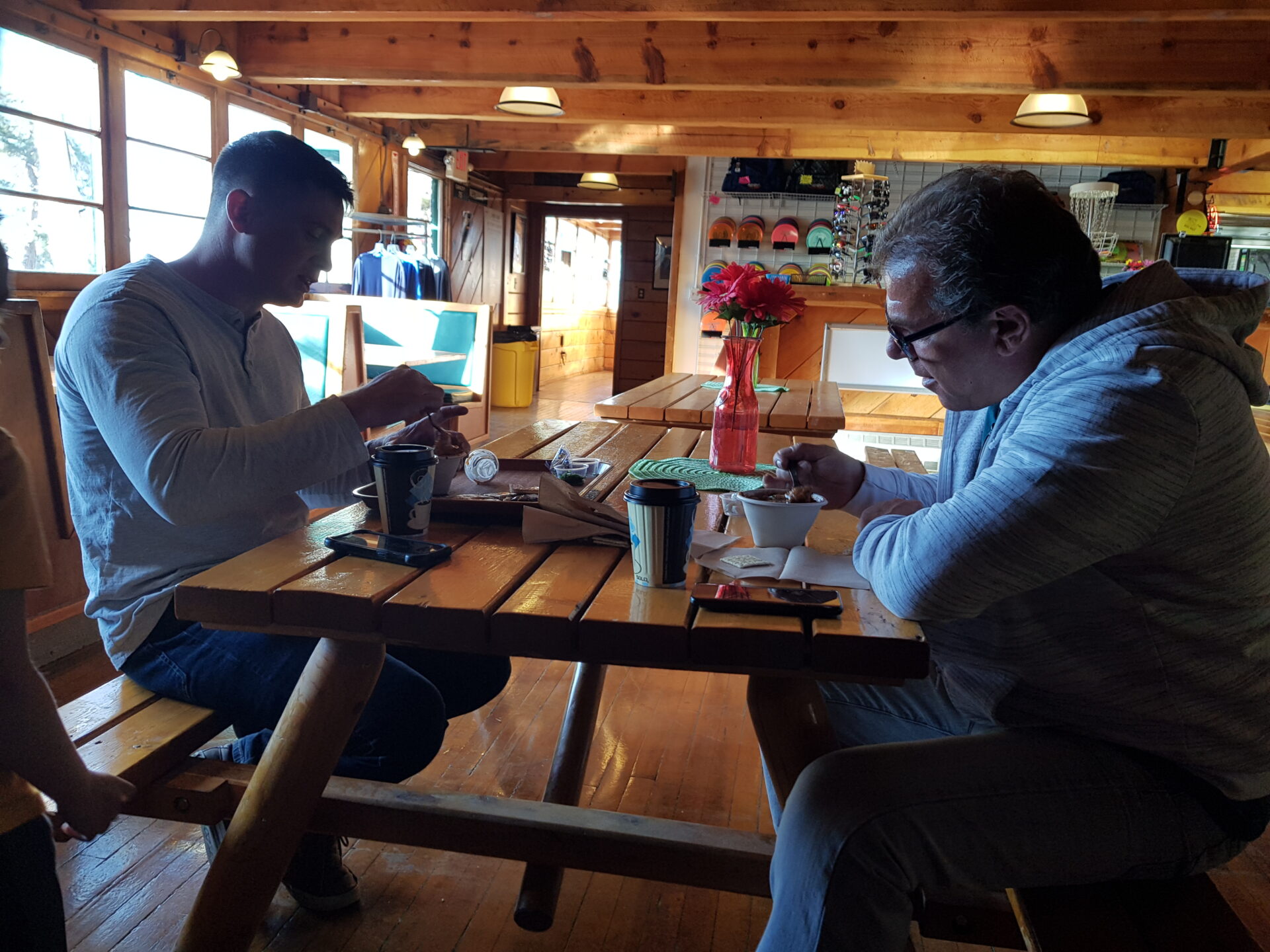 Nach der Wanderung kehrten wir in der North Lodge ein, um uns etwas aufzuwärmen. Da unser Enkel Noah hungrig war, bestellten wir für den Kleinen ein Sandwich und für uns hausgemachtes Chili, das super schmeckte.