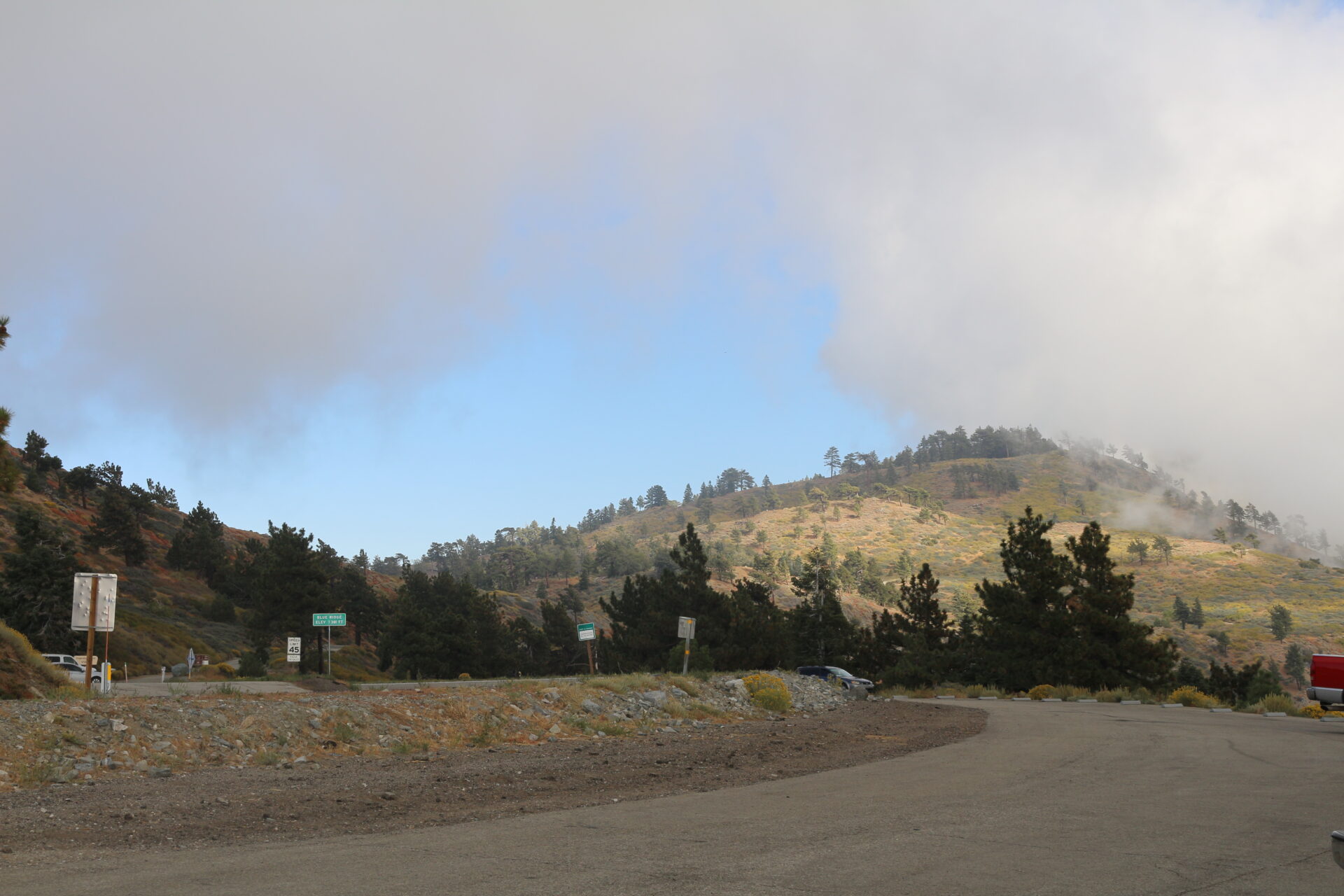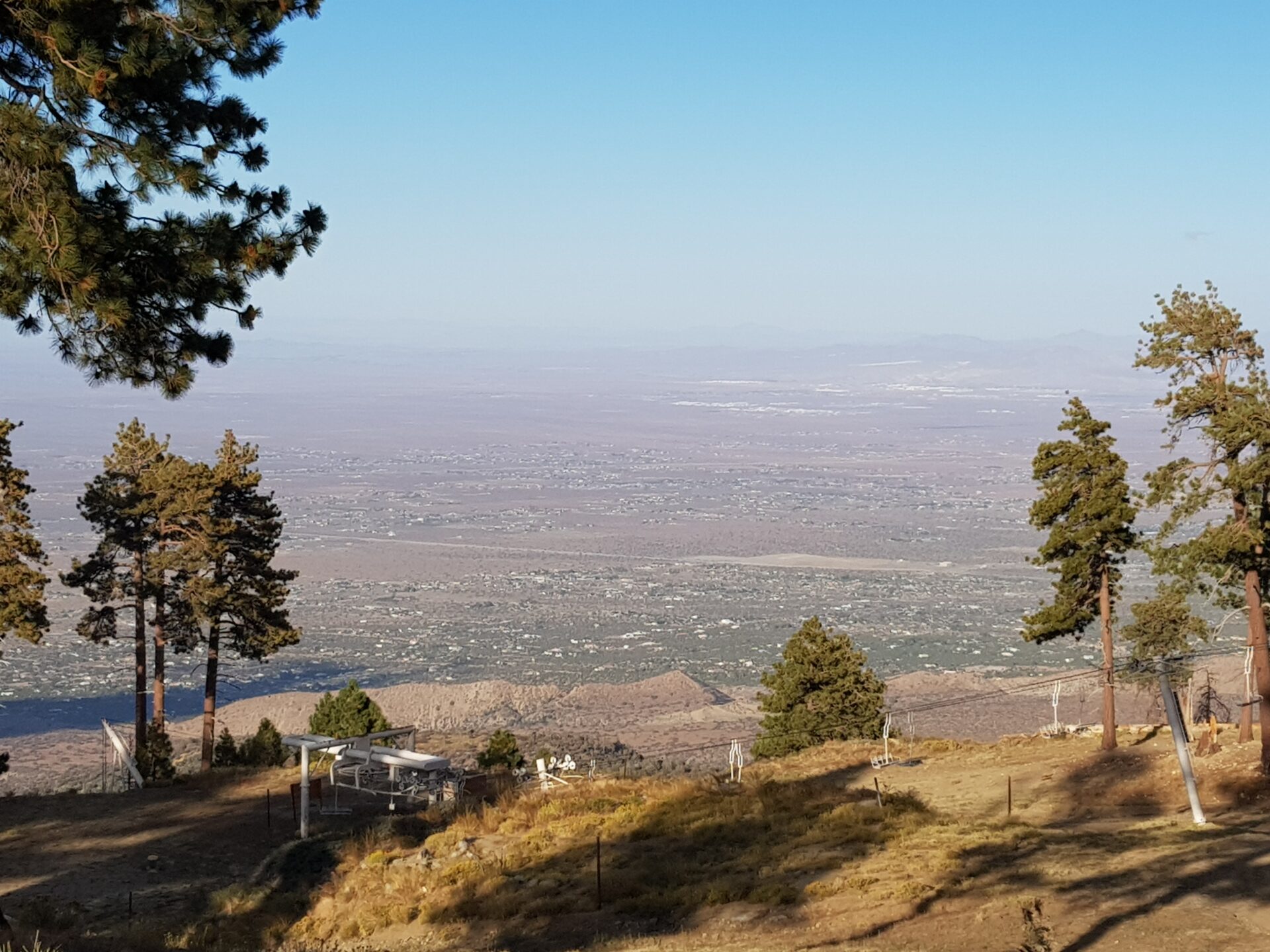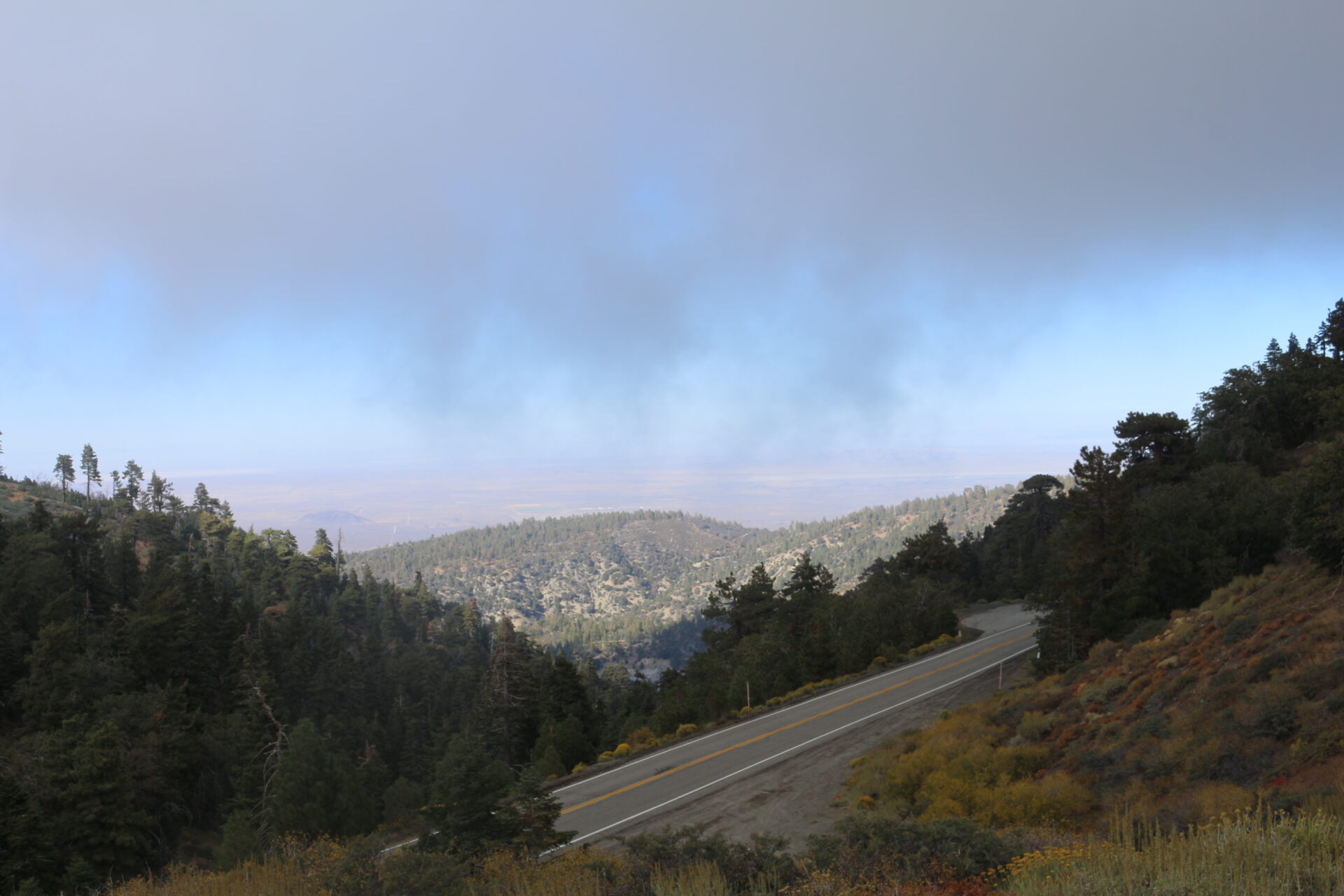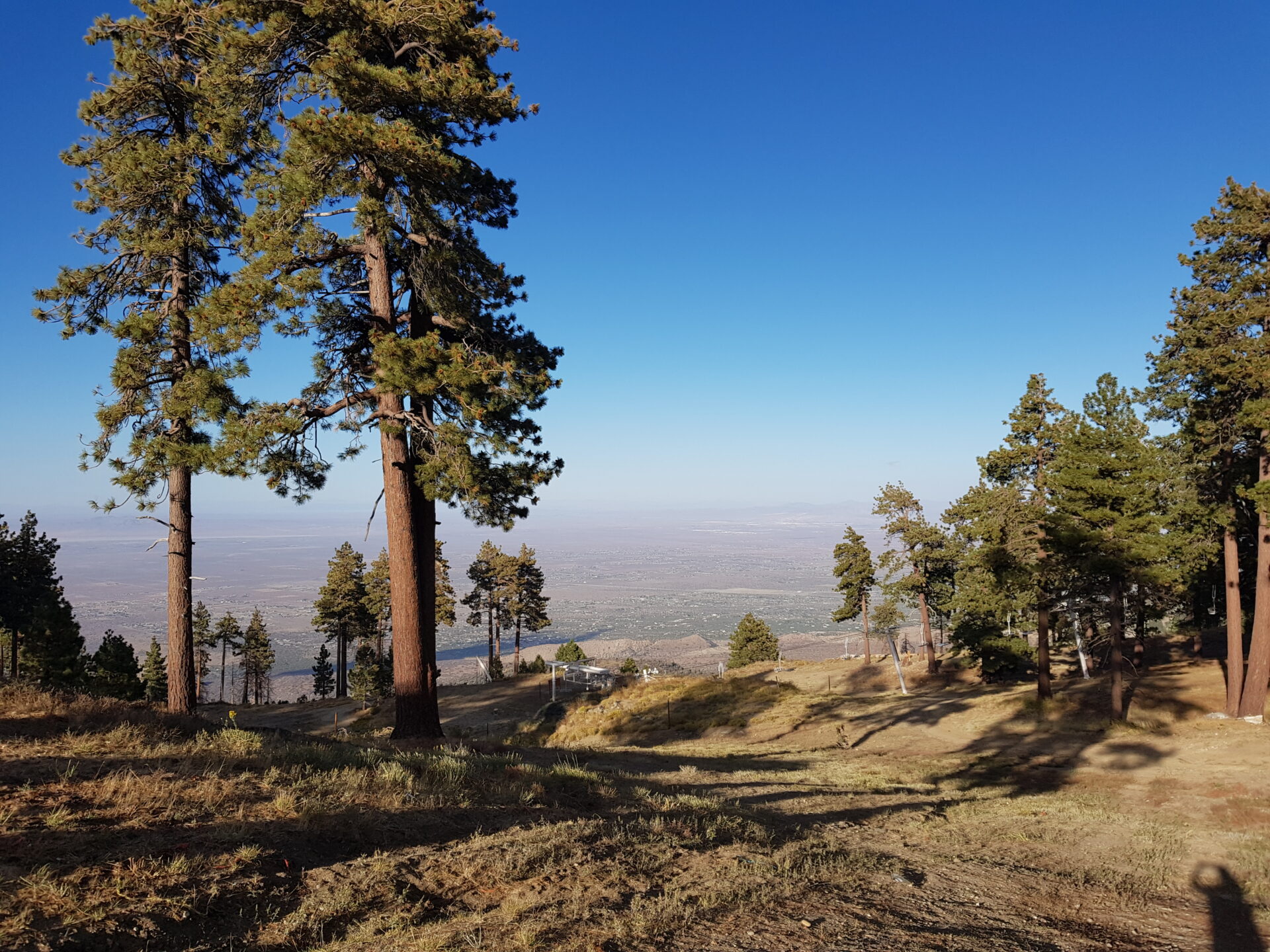 Die Fahrt führte uns über die Interstate 10 bis zur Ausfahrt Barstow/Las Vegas und weiter auf der Interstate 15 Richtung Wrightwood. Dann ging es ca 5 Kilometer in Serpentinen den Berg hinauf, die immer enger und steiler wurden. Der Ausblick war wirklich gigantisch, aber da ich es nicht so gut vertrage hinten im Auto zu sitzen, konnte ich ihn gar nicht richtig genießen. Bei jeder Kurve habe ich gehofft, es wäre die Letzte und ich schaffe es oben anzukommen, ohne mich zu übergeben.