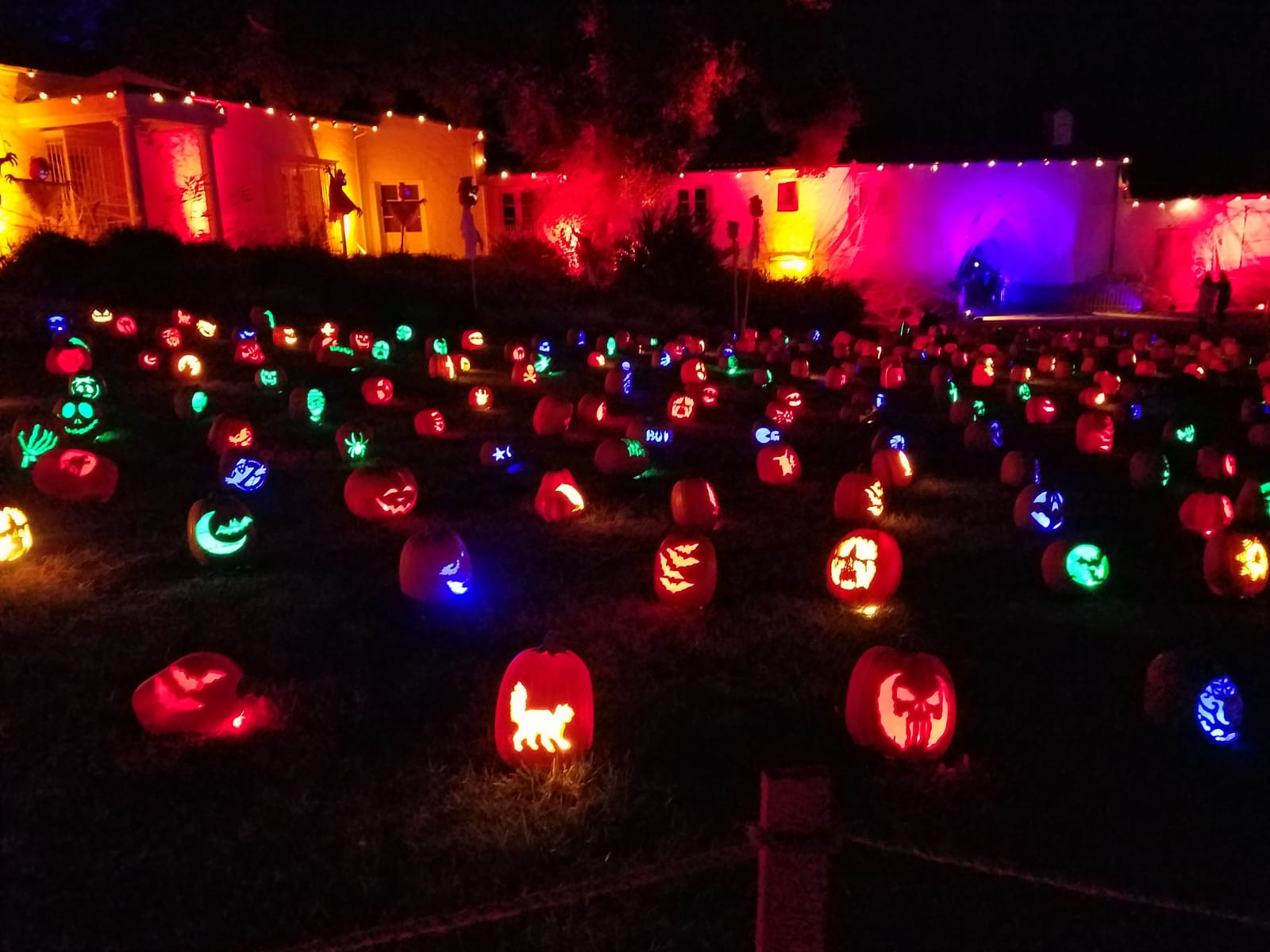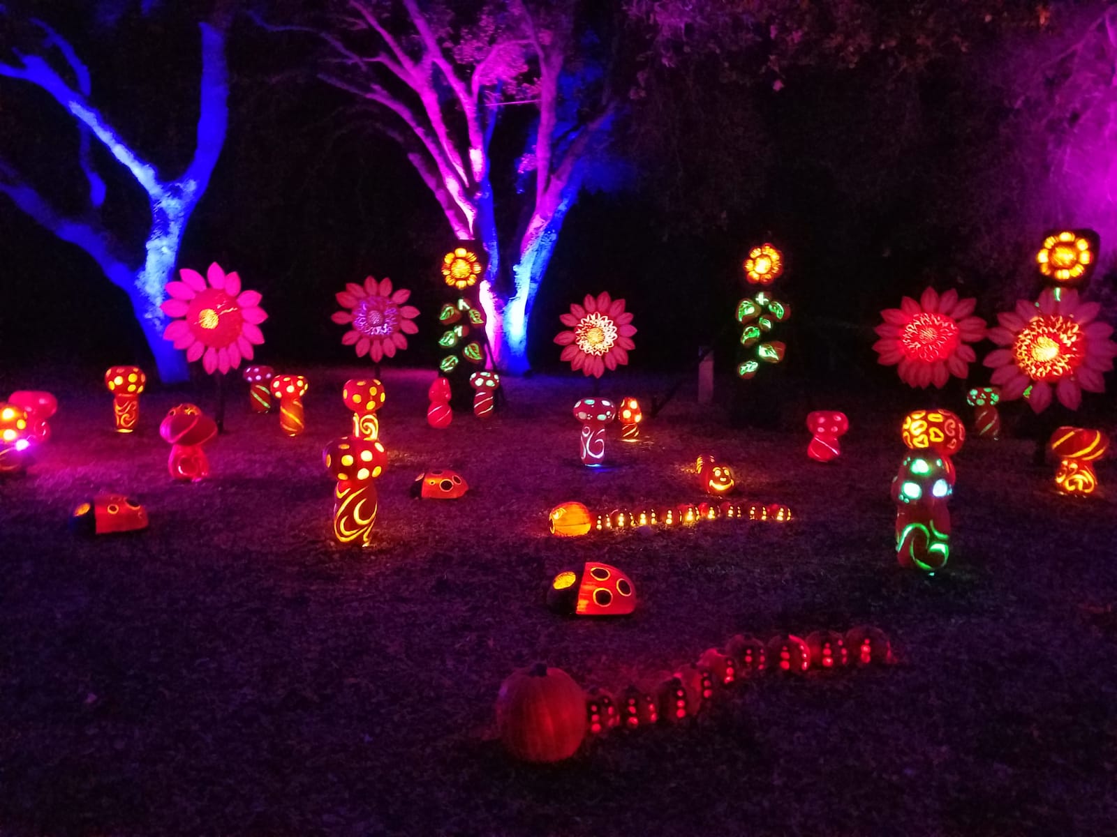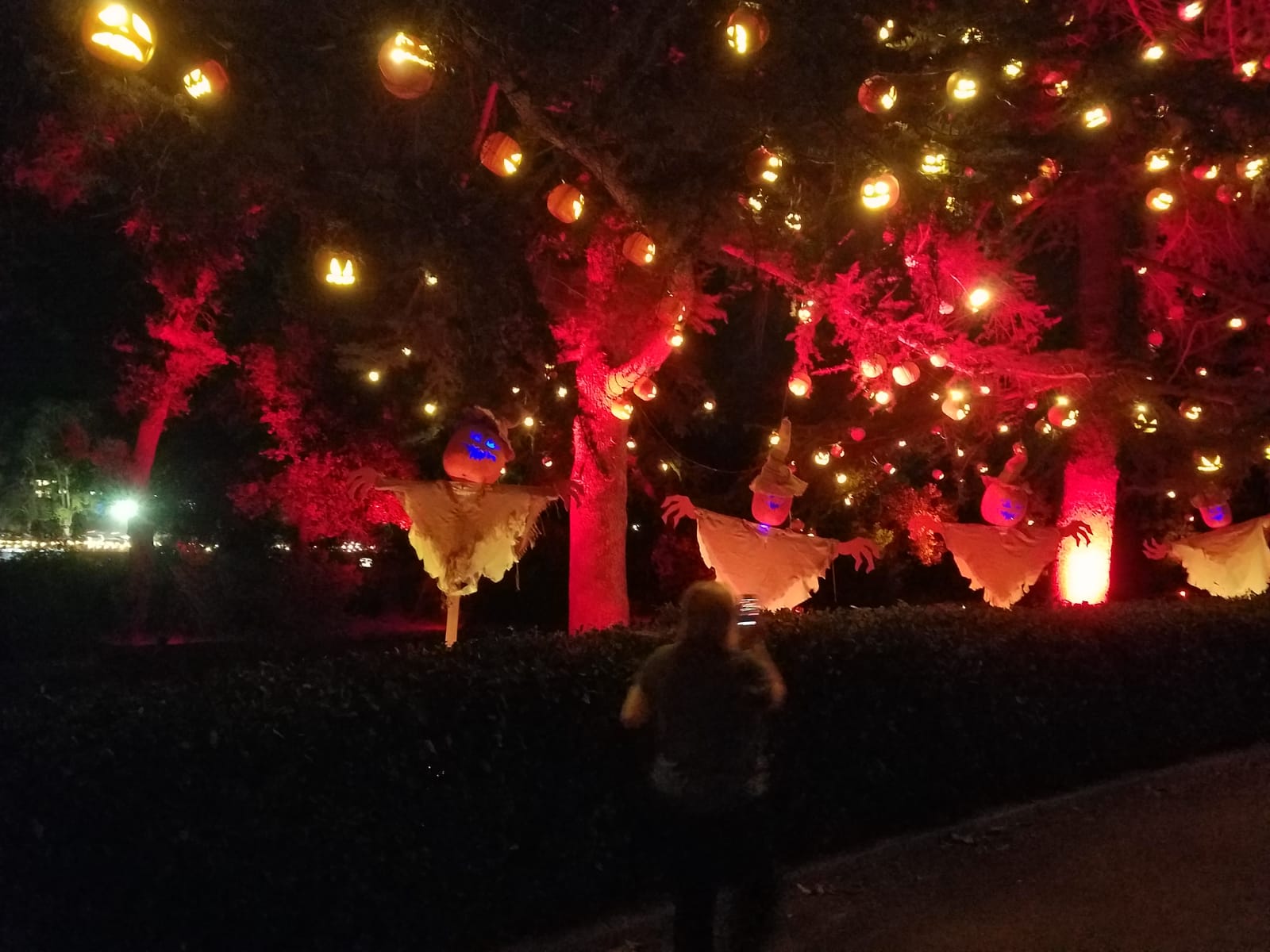 Entlang dem ca 800 Meter langem Weg über das weitläufige Gelände der Farm befinden sich Tausende kunstvoll handgeschnitzte und beleuchtete Kürbisse. Es werden verschiedene Themen aufgegriffen wie zum Beispiel Dinosaurier mit einem riesigen T Rex oder die Unterwasserwelt mit Haien und Schildkröten. Diese beiden supergestalteten Bereiche begeisterten unseren kleinen Enkel Noah ganz besonders.