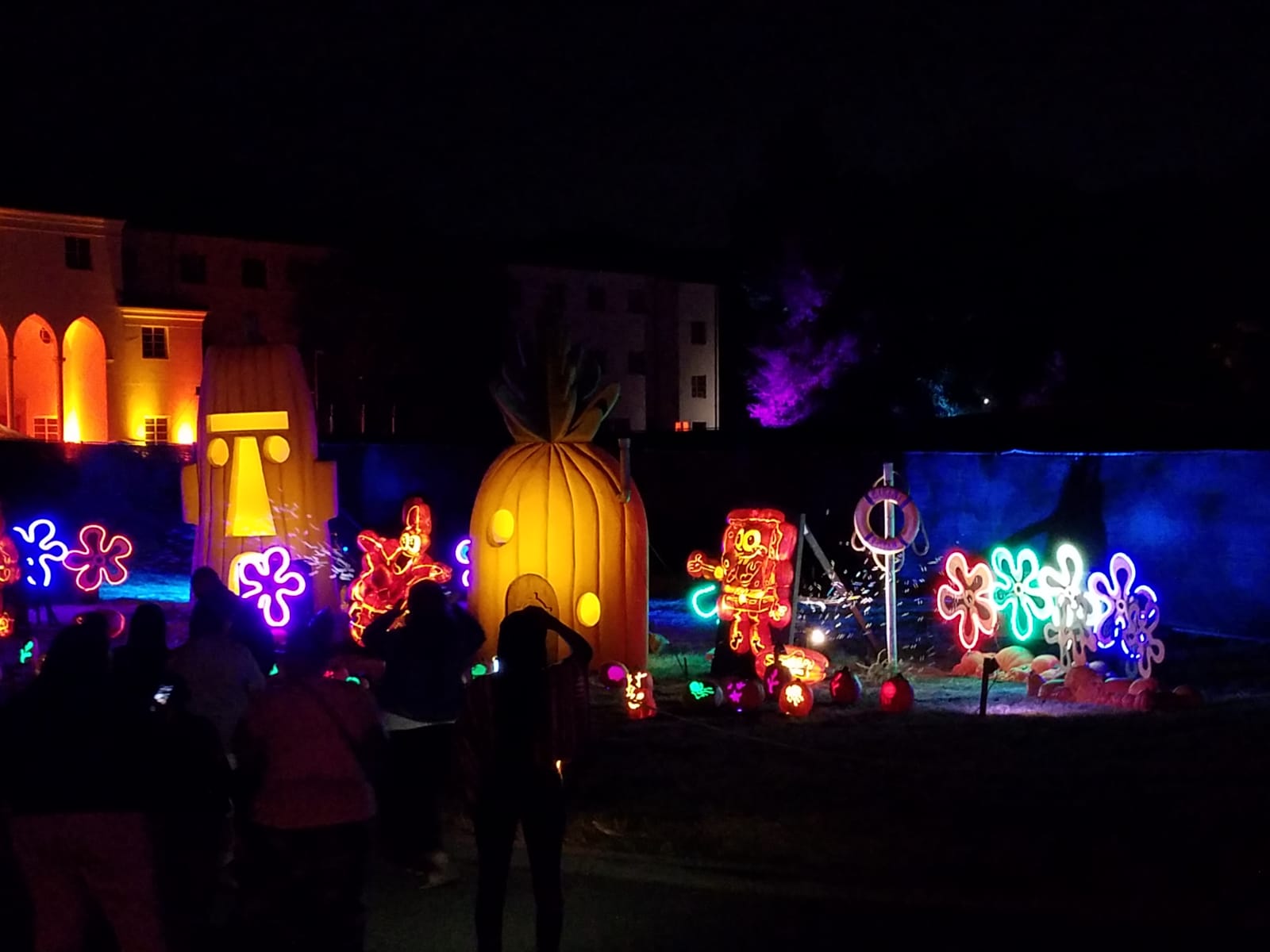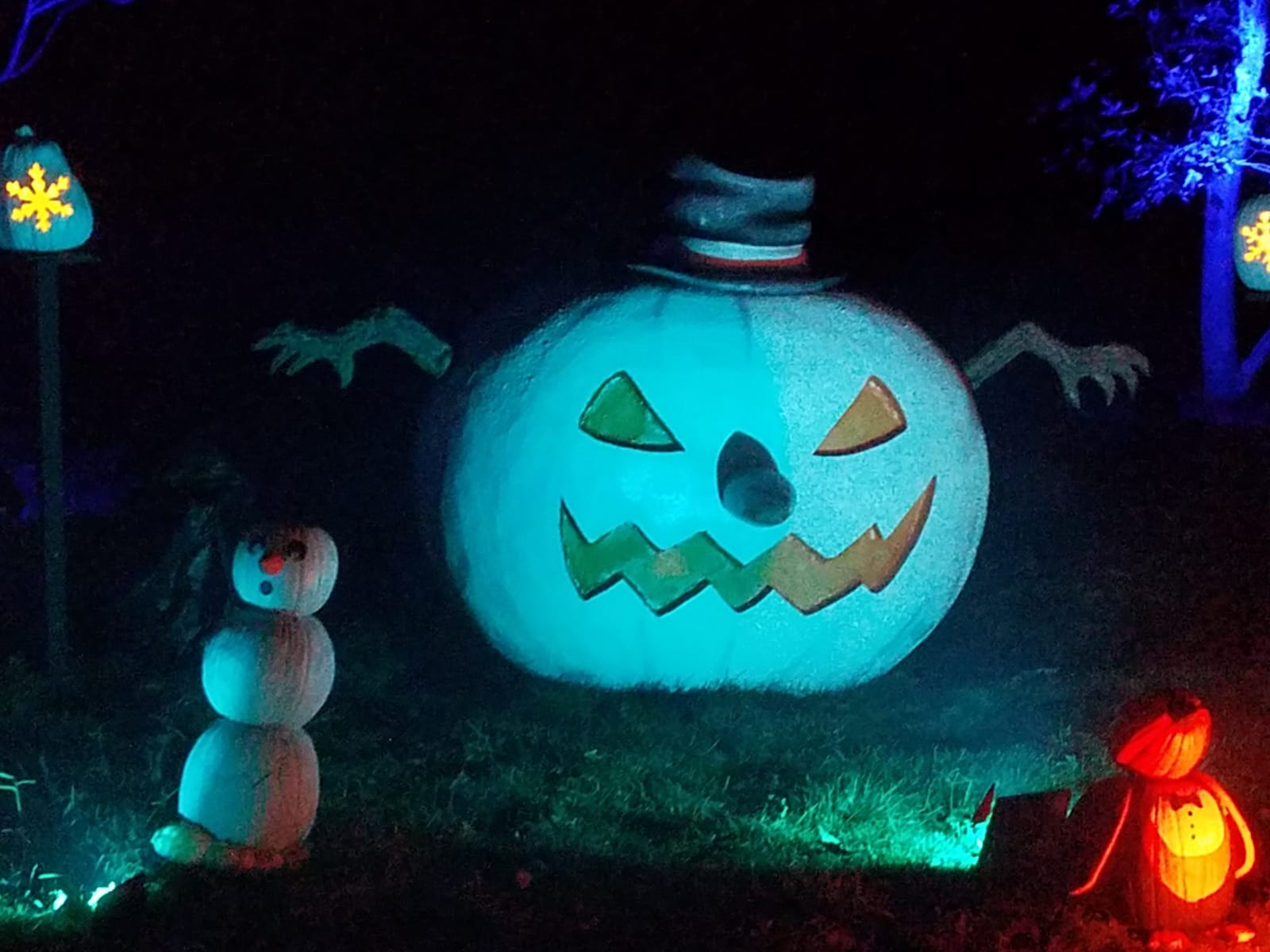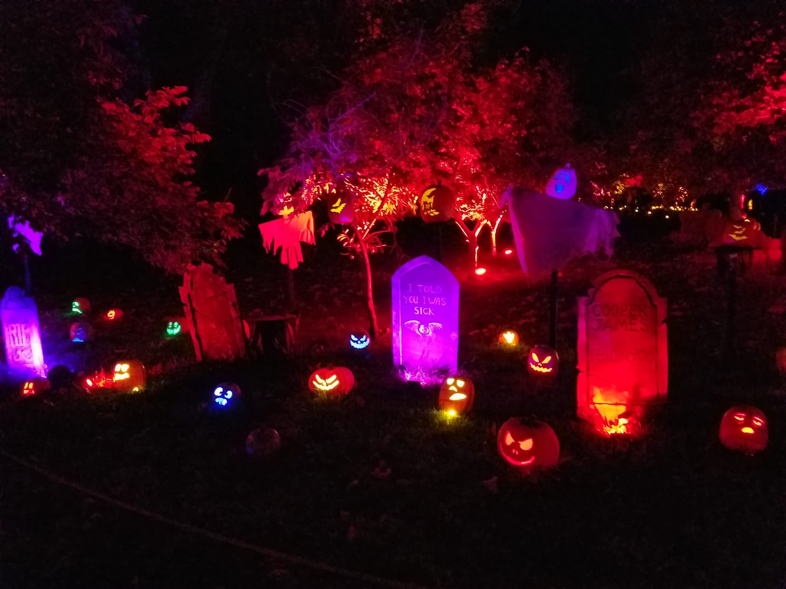 Entlang dem ca 800 Meter langem Weg über das weitläufige Gelände der Farm befinden sich Tausende kunstvoll handgeschnitzte und beleuchtete Kürbisse. Es werden verschiedene Themen aufgegriffen wie zum Beispiel Dinosaurier mit einem riesigen T Rex oder die Unterwasserwelt mit Haien und Schildkröten. Diese beiden supergestalteten Bereiche begeisterten unseren kleinen Enkel Noah ganz besonders.