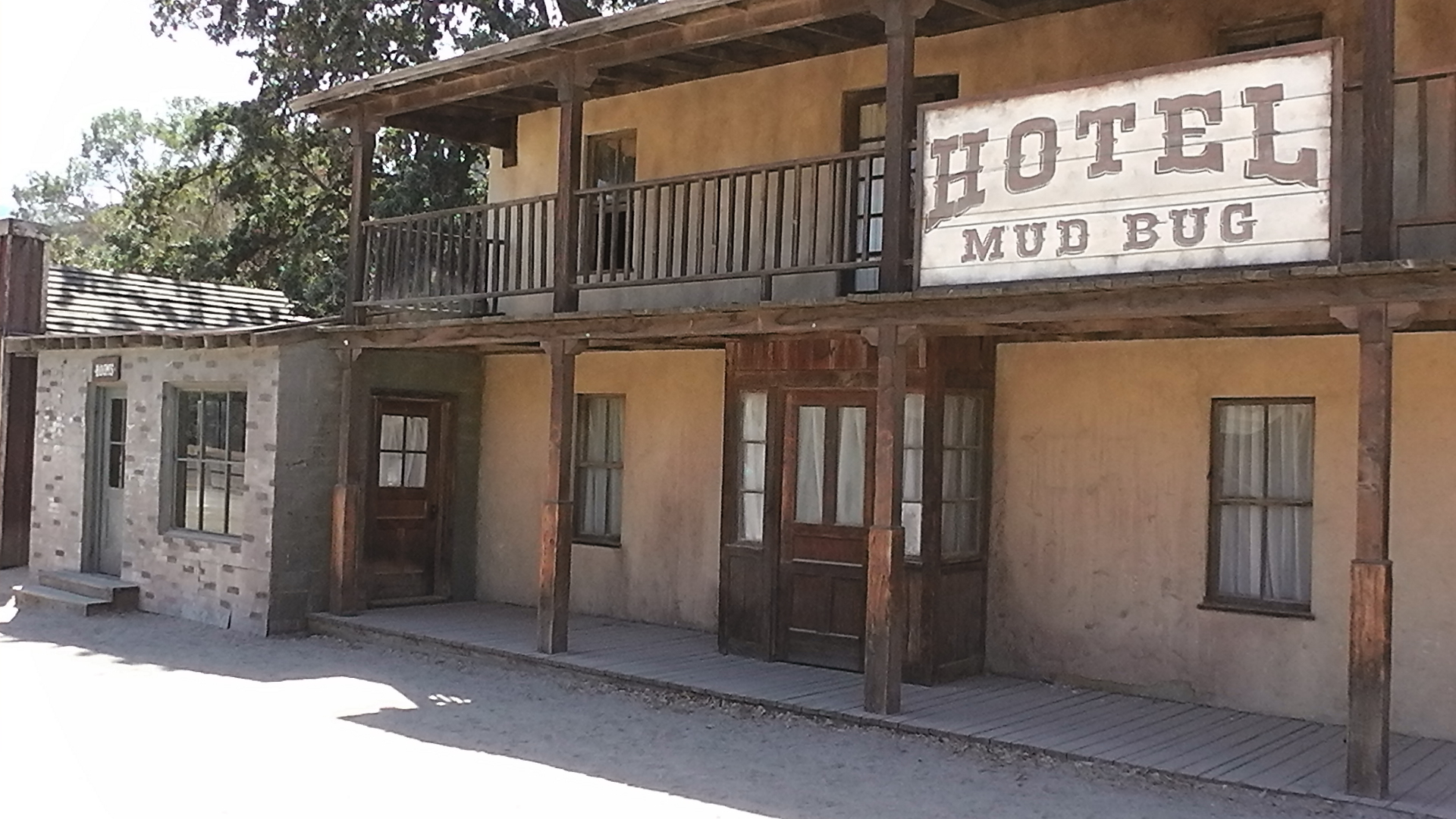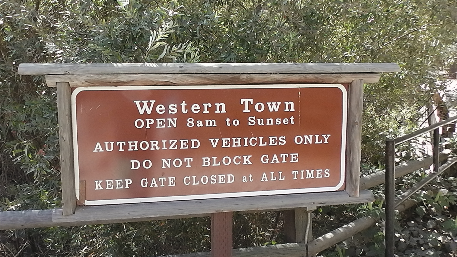 Mein Sohn hatte für unseren letzten Urlaubstag eine Überraschung geplant. Er sagte wir machen einen Ausflug in einen kleinen, schönen Park zum Spazieren gehen. Wir fuhren den Highway 101 entlang und bogen auf die Kanan Road Richtung Süden ab. Diese Straße fahren wir oft und ich dachte er will Richtung Malibu. Aber nein, nach 500 Metern ging es links in die Cornell Road und dann nach ca 3 km hielten wir auf einem Parkplatz zu einer alten Westernstadt.