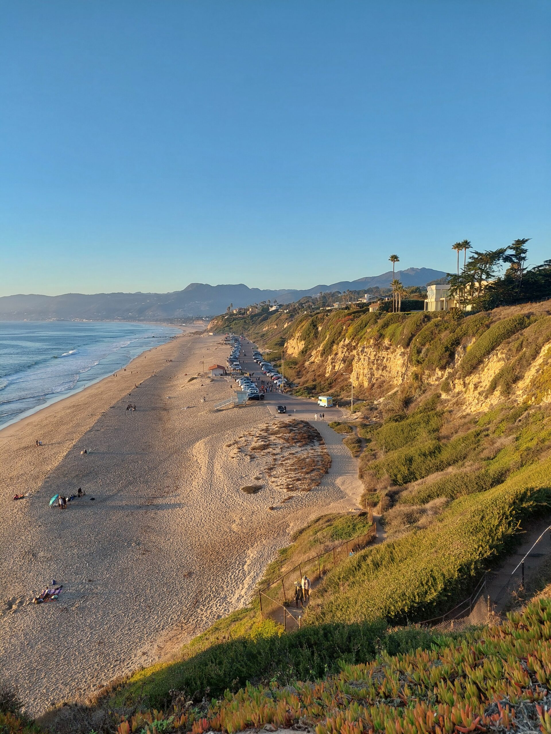 Oben angekommen, standen wir staunend vor der majestätischen Landzunge, die sich wie ein natürlicher Balkon über den Pazifik erstreckt. Von hier aus reicht der Blick über den halbmondförmigen Point Dume State Beach, der sich unter uns erstreckte, bis hin zu den Santa Monica Mountains. Diese Kombination aus Meer und Bergen ist ein Anblick, der in Erinnerung bleibt. Für Fotografie begeisterte bietet dieser Ort unzählige Möglichkeiten, die Schönheit der Natur einzufangen.