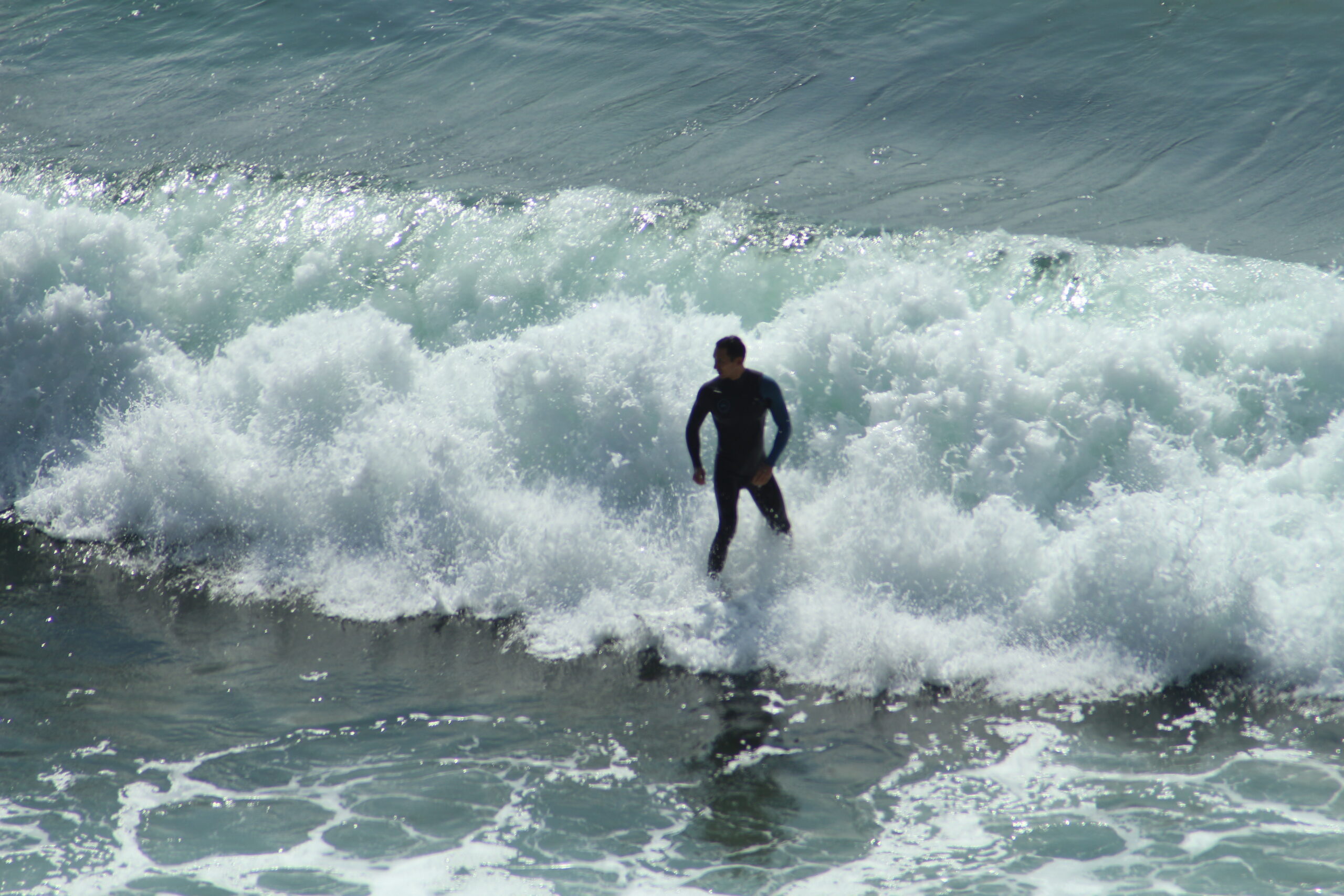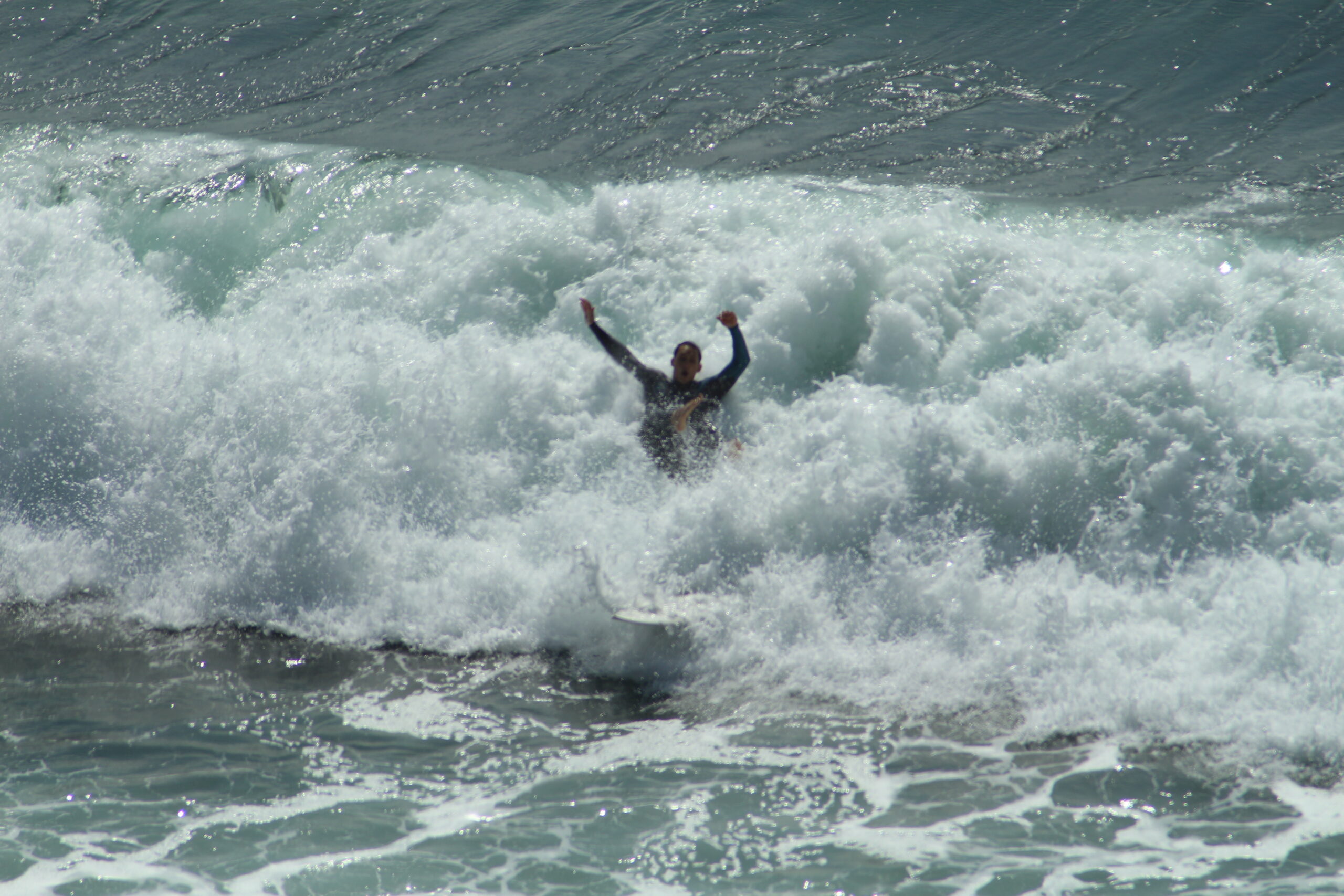 Der Weg hinunter zum Strand ist nicht ohne Herausforderungen. Die Treppe, die zum Strand führt, ist zwar vorhanden, doch sie ist alt und etwas verfallen. Das rostige Geländer wirkt jedoch stabil genug, um sich daran festzuhalten, und so meisterten wir den Abstieg sicher. Unten angekommen, wurden wir von einem paradiesischen Anblick empfangen: Auf der einen Seite die beeindruckenden Felsen, auf der anderen das tiefblaue Wasser des Pazifiks. Zahlreiche Surfer nutzten die Wellen, um ihre Künste zu zeigen, während wir entspannt am Strand entlang spazierten und das Schauspiel der Natur genossen.