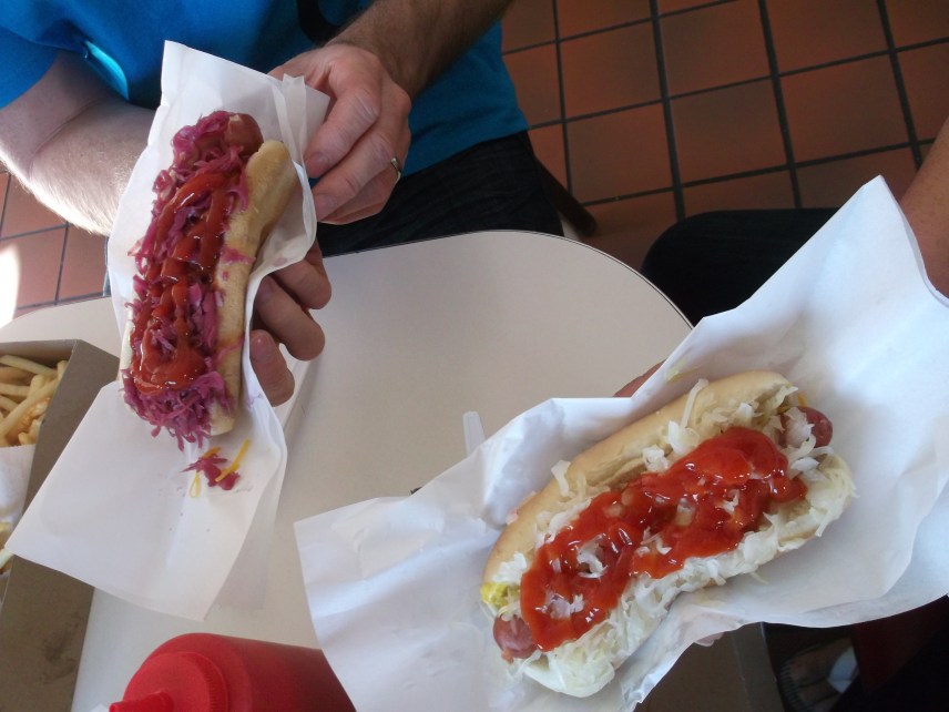 Carneys bietet eine große Auswahl an Burgern, Hot Dogs, Wraps, Salate, French Fries, Sandwiches aber aus Eis und Getränke. Das Restaurant ist bekannt für seine Chili Burger und Chili Hot Dogs und es gibt sogar süße Kartoffelchips. Man erzählte uns, dass sogar Elvis Presley dort seine Hot Dogs und Burger geholt hat.