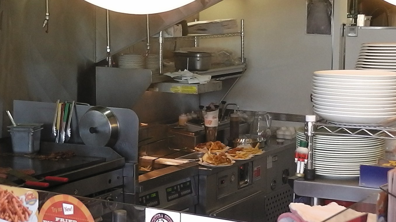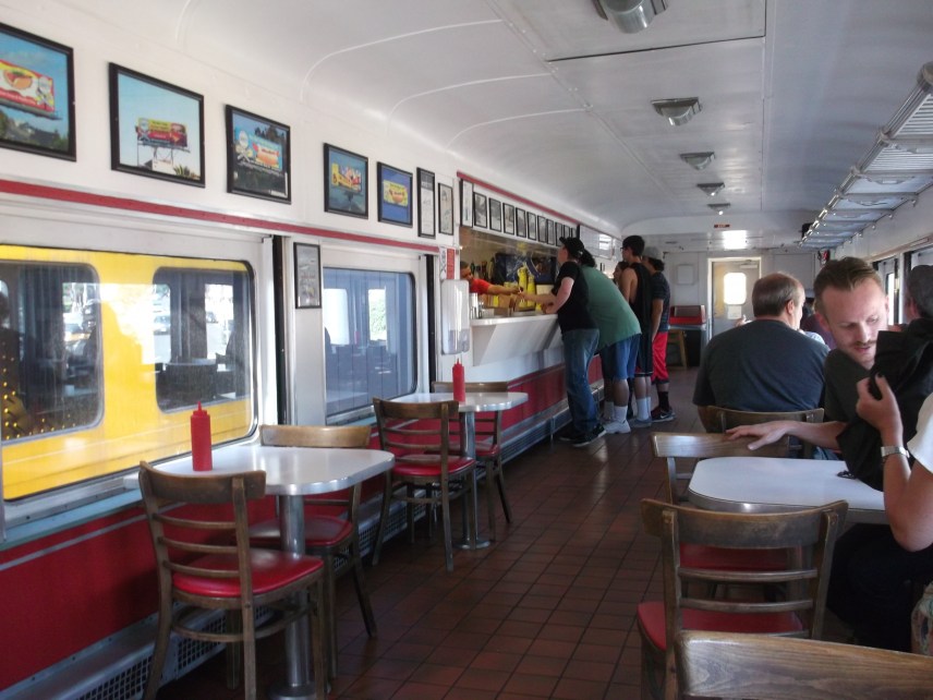 Es befindet sich in einem gelben Union Pacific Eisenbahnwagen auf dem Sunset Boulevard in Los Angeles. Dieser wurde schon im Jahr 1975 mit viel Aufwand an diese Stelle transportiert und dort in ein gerne besuchtes Restaurant umgewandelt.