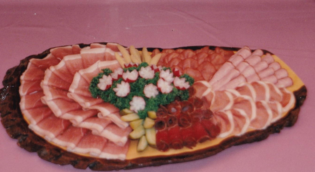 Da ich vom Fach bin, viel Catering-Erfahrung und auch das nötige Equipment dazu besitze, war das überhaupt kein Problem für mich. Ruck zuck war auf einer rustikalen Baumscheibe ein Schinkenbrett gelegt und ich konnte mich schnell der gemütlichen Runde anschließen.