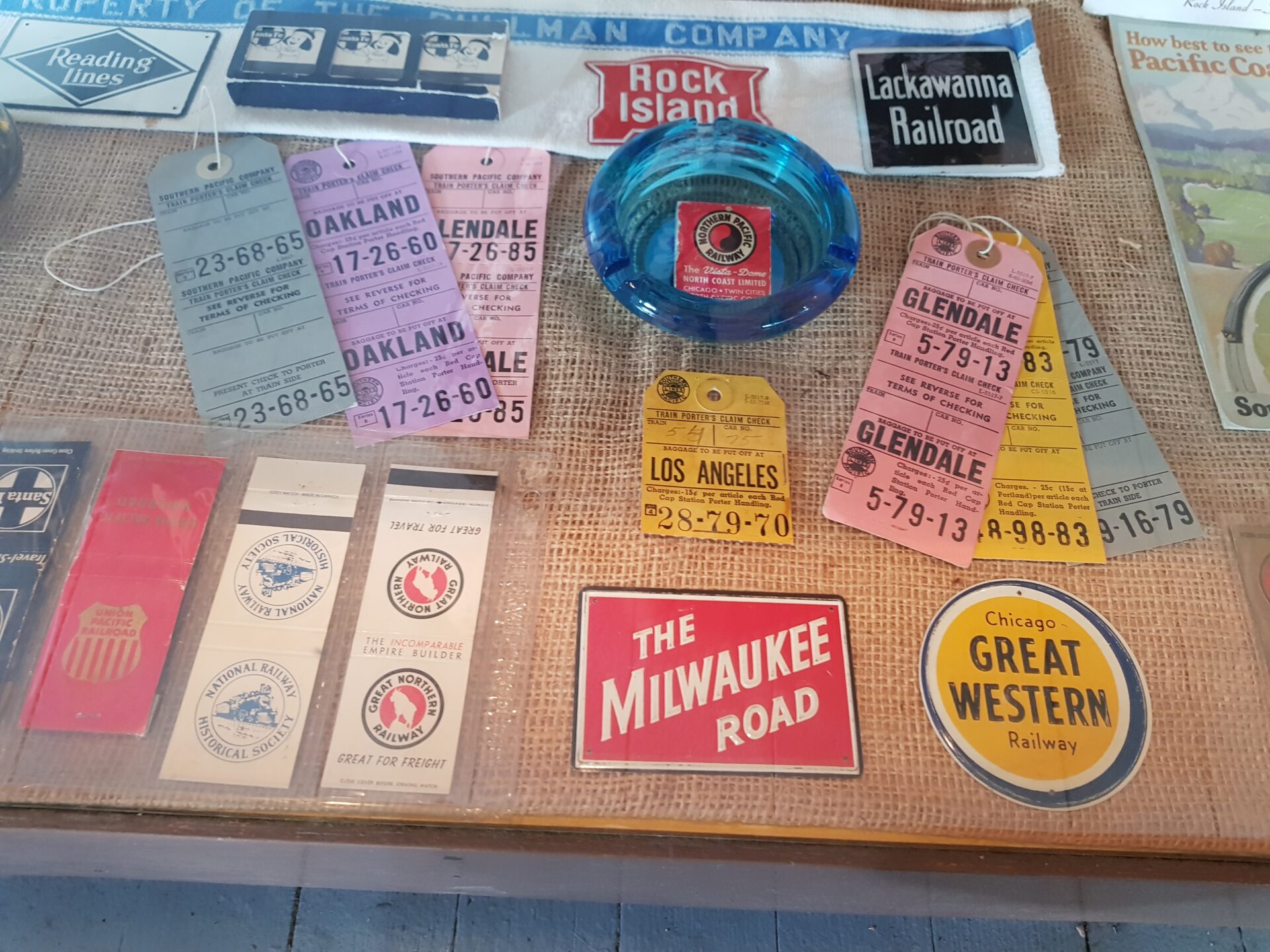 Ergänzt wird diese Sammlung durch eine Vitrine voller historischer Fahrkarten von legendären Linien wie der Milwaukee Road oder Great Western.
